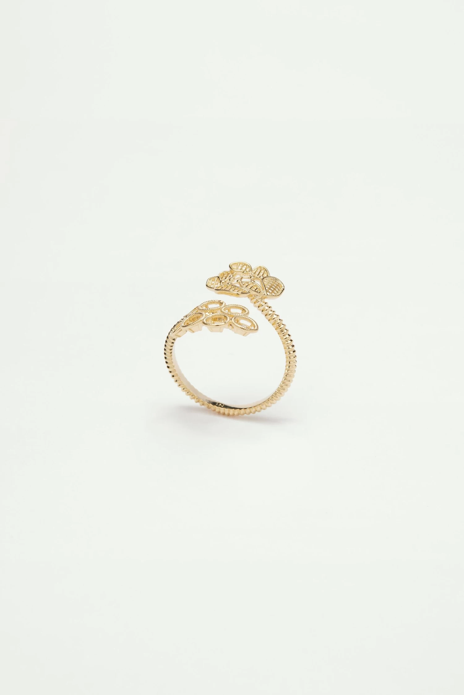 Découvrez la bague ajustable fil d’or. La beauté de ce bijou réside dans la qualité du savoir-faire : une ligne de fil, nouée et bouclée pour former un motif plus complexe qu’un flocon de neige et aussi précieux qu’une pierre fine. Légère et distinguée, elle s’associera à merveille avec tous les bijoux de la collection.