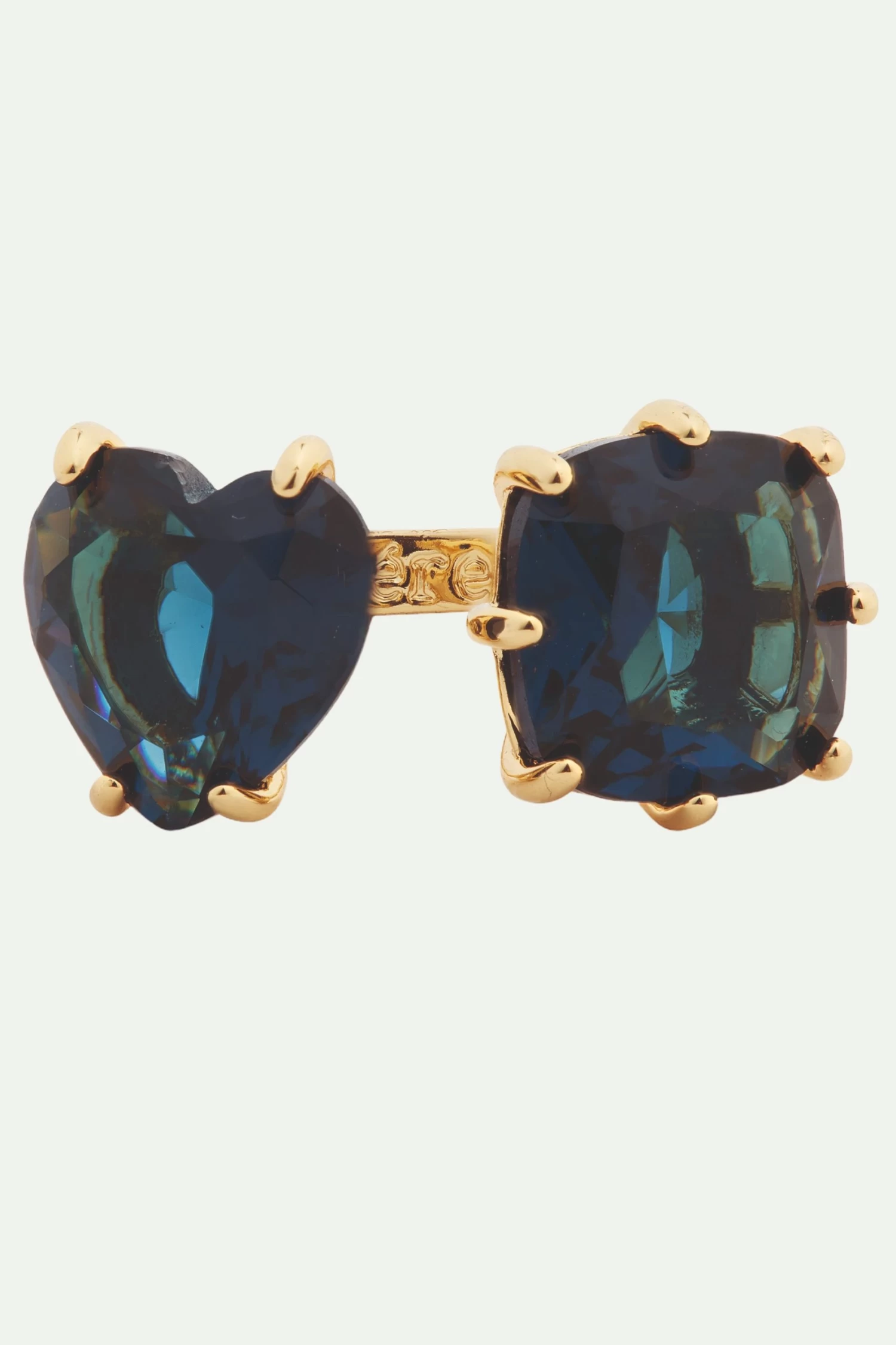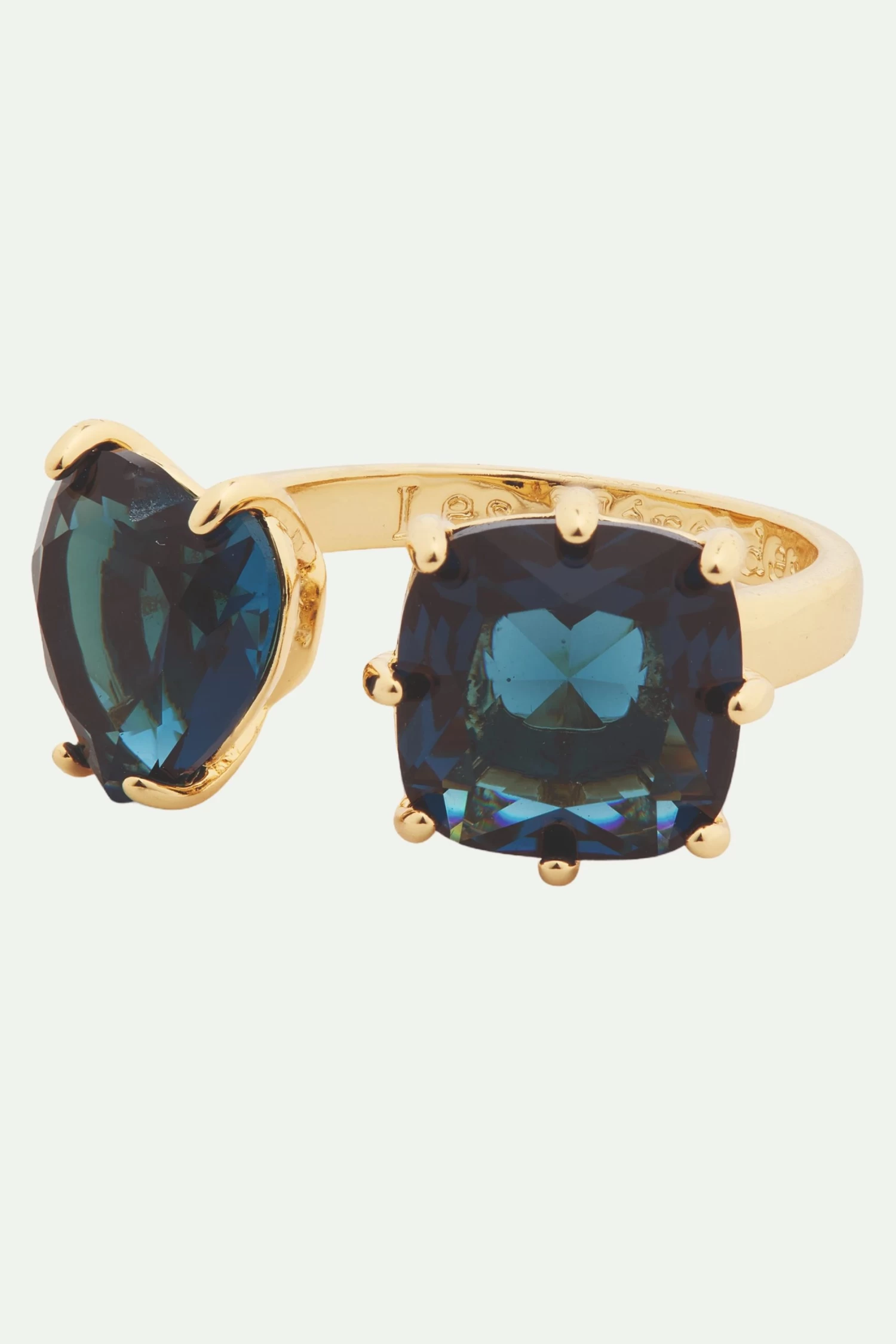 Découvrez la nouvelle parure de la collection La Diamantine bleu océan, proposant une teinte similaire à celle du saphir, qui inclut une bague ‘toi et moi’. Elle est constituée d’un anneau doré avec d’un côté une pierre en forme de cœur, et de l’autre, une pierre carrée avec des facettes lumineuses. Cette bague, comme son nom l’indique, est ajustable et il suffit de la serrer délicatement pour l’adapter à votre doigt, garantissant ainsi le cadeau parfait pour la personne de votre choix. Bague Ajustable : Laiton doré à l’or fin émaillé à la main et verre facetté.