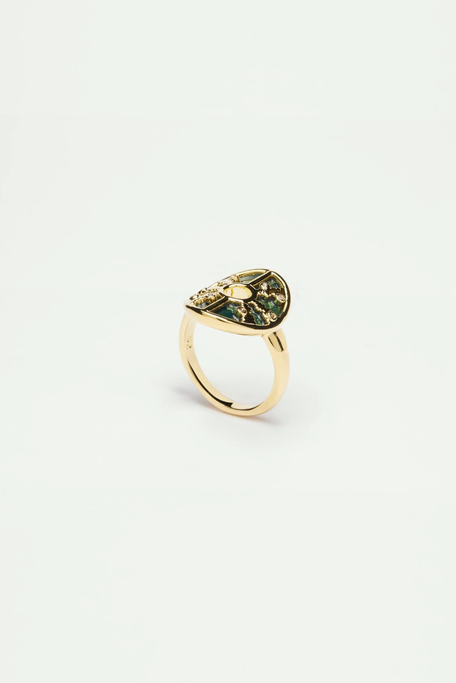 La Maison Les Néréides propose une vaste sélection de bagues cocktail. inspiré par le tableau ‘La Nuit étoilée’ de Van Gogh, ce bijou fantaisie évoque le reflet des lumières sur un émail bleu nuit. Les pierres en verre taillé ajoutent une touche de lumière. Si vous recherchez un bijou imposant qui reflète votre goût pour l’art, cette bague est faite pour vous. Bague Cocktail : laiton doré à l’or fin, émaillé à la main et verre taillé.