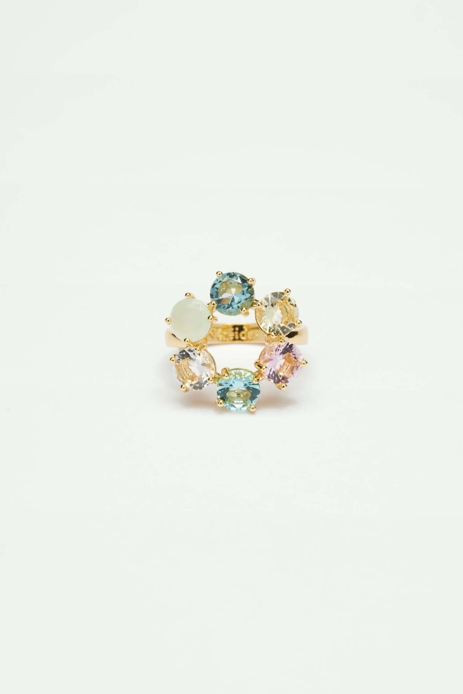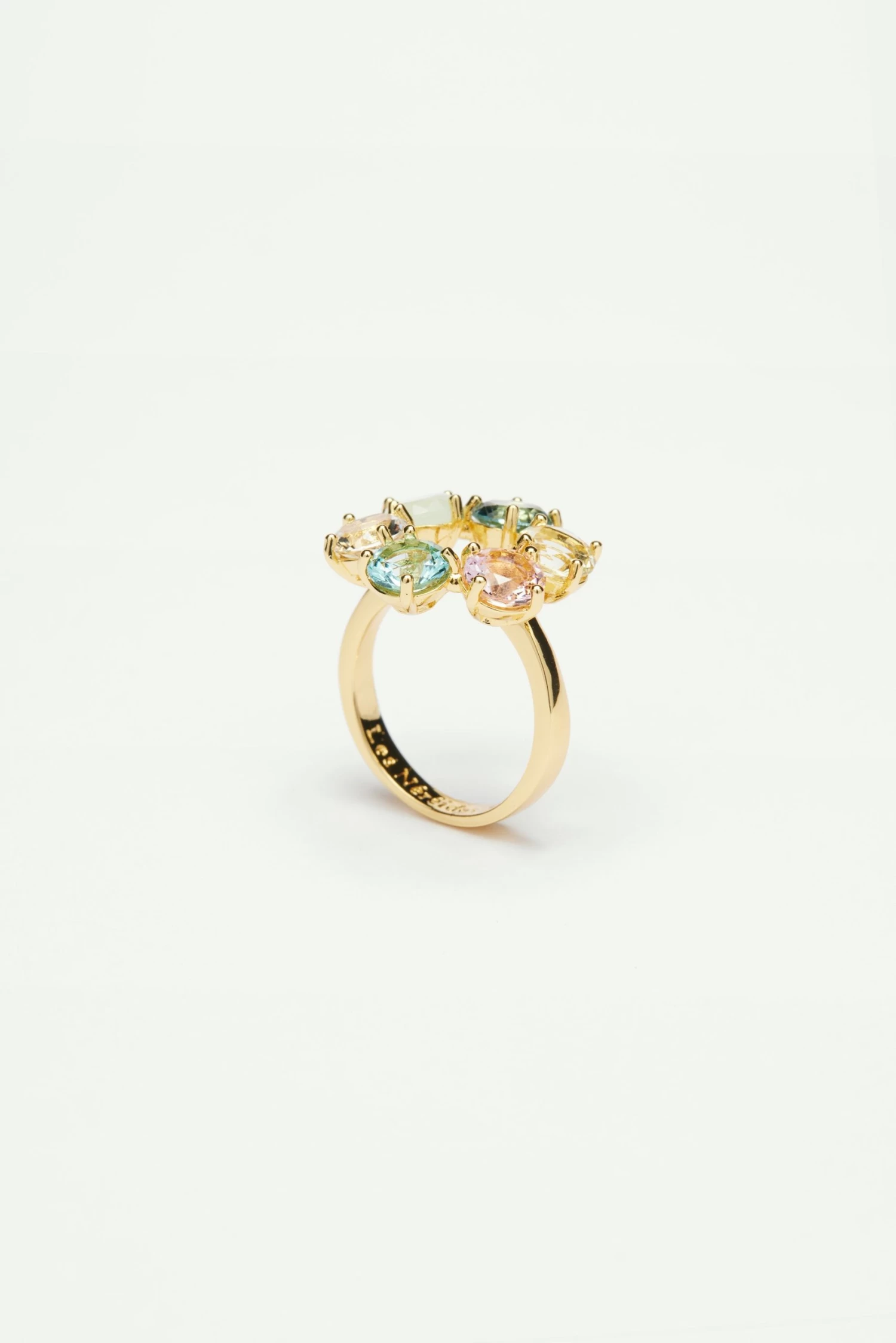 Cette bague fine La Diamantine est composée de six pierres multicolores. Ce bijou fantaisie de la collection La Diamatine Acqua Azzura fera briller votre main de mille feux. Le verre facetté prend des allures de quartz rose, d’aquamarine, de cristal de roche, tantôt transparent et translucide. Gourmande et acidulée, cette parure est une véritable explosion de couleurs. Associez-la aux petites créoles La Diamantine pour un mix and match parfait.
