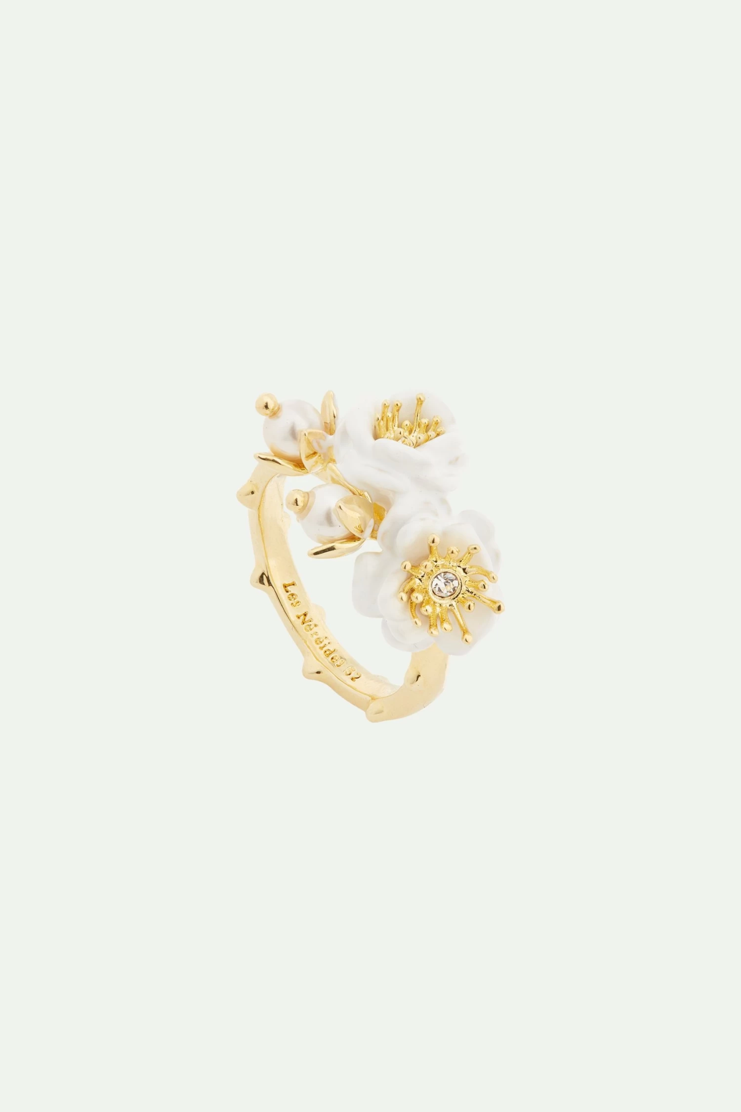 Cette bague romantique est issue de la collection Rose Eternelle et présente une rose dorée avec deux roses blanches ornées d’un cristal au centre. La bague est également décorée de deux perles de culture qui rappellent les boutons de roses fermés. Cette bague sera un cadeau idéal pour manifester votre amour à votre partenaire ou pour célébrer votre maman à l’occasion de la fête des mères, ou encore comme cadeau de Noël. Bague : Laiton doré à l’or fin, émaillé à la main, perles de culture et cristaux facettés.