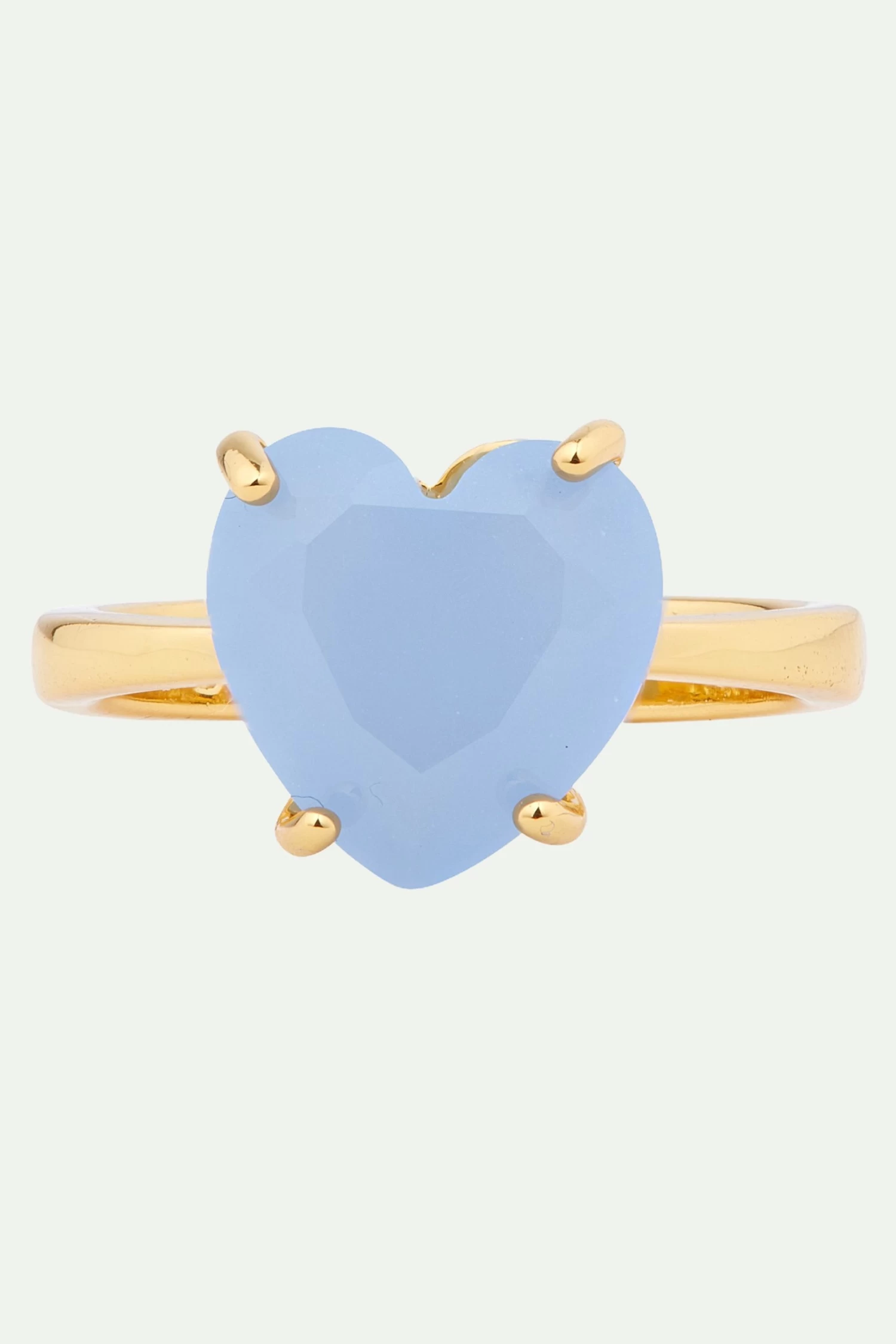 Découvrez la bague solitaire cœur issue de la collection La Diamantine bleu ciel. Ce bijou fantaisie composé d’une pierre en verre taillé vous permet d’adopter un look glamour et poétique. Pour obtenir la parure complète, vous pouvez l’associer au collier pendentif cœur La Diamantine bleu ciel. Bague Solitaire : Laiton doré à l’or fin, verre facetté.