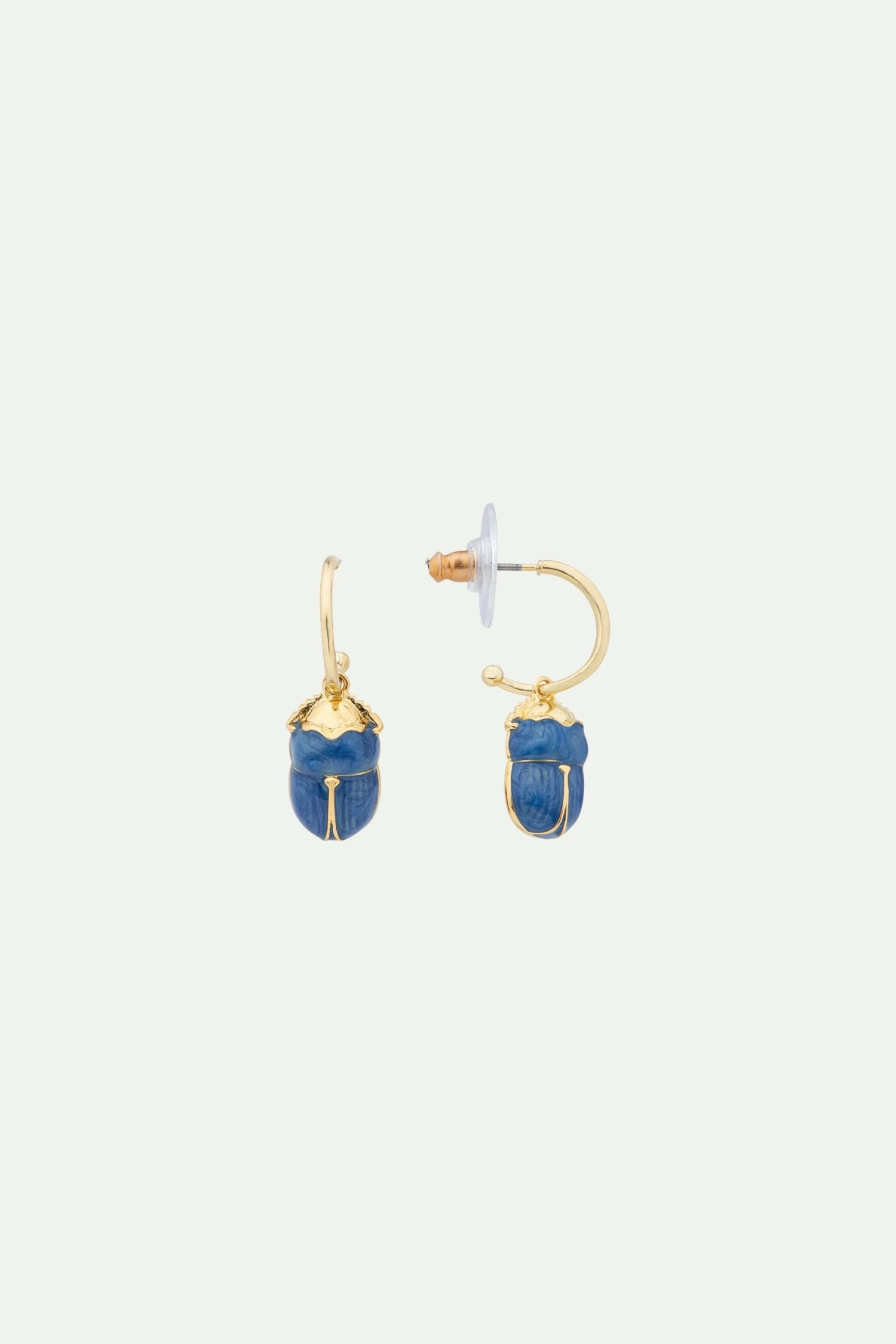 Ces boucles d’oreilles créoles se composent de scarabées bleus, émaillés à la main. Cet animal, emblème de pouvoir, fait de de cette paire un bijou d’exception qui s’adresse aux femmes élégantes et sophistiquées. Dans la même collection Les Amulettes, retrouvez le collier scarabée bleu avec lequel vous pourrez l’assortir. Boucles d’Oreilles Tiges : Laiton doré à l’or fin et émaillé à la main.