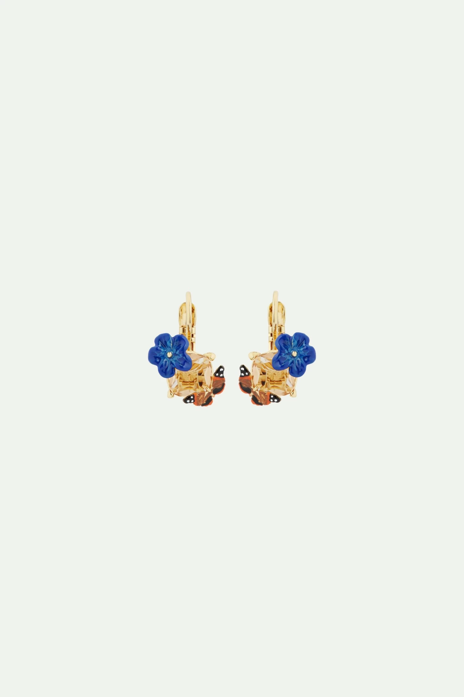 Cette paire de boucles d’oreilles dormeuses fleur de lin bleue, verre facetté et papillon, issue de la collection Tableau de Maître, offre une représentation artistique qui provient des peintures du siècle d’or flamand et des natures mortes à motifs floraux. Les boucles d’oreilles mettent en valeur une petite fleur bleue délicate, délicatement apposée sur un verre facetté. En face, un papillon monarque émaillé à la main, avec une attention minutieuse portée aux détails de ses ailes délicates. Ces boucles d’oreilles constituent un cadeau idéal pour célébrer des occasions spéciales telles qu’un anniversaire ou la Saint-Valentin.Boucles d’Oreilles Dormeuses : Laiton doré à l’or fin émaillé à la main et verre facetté.