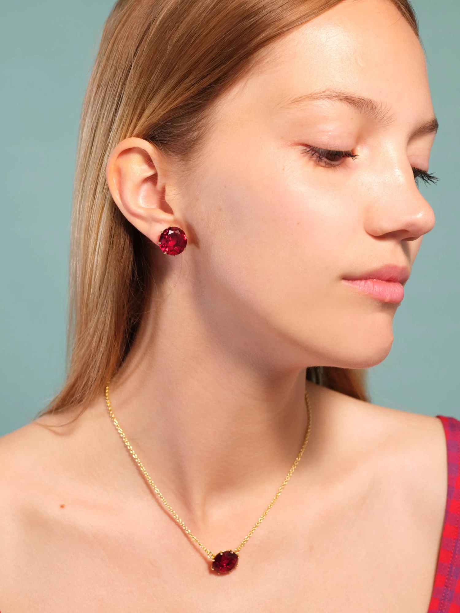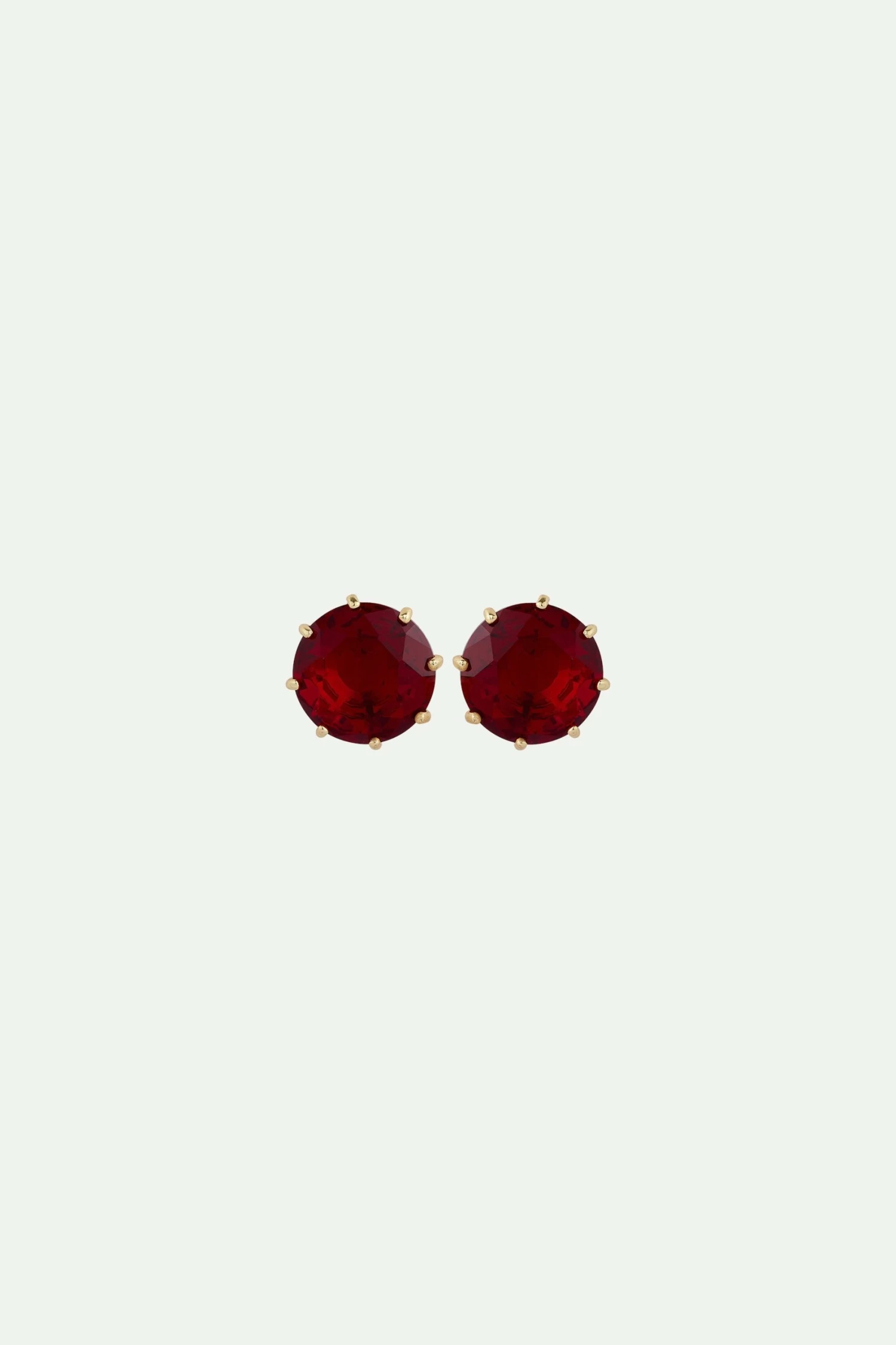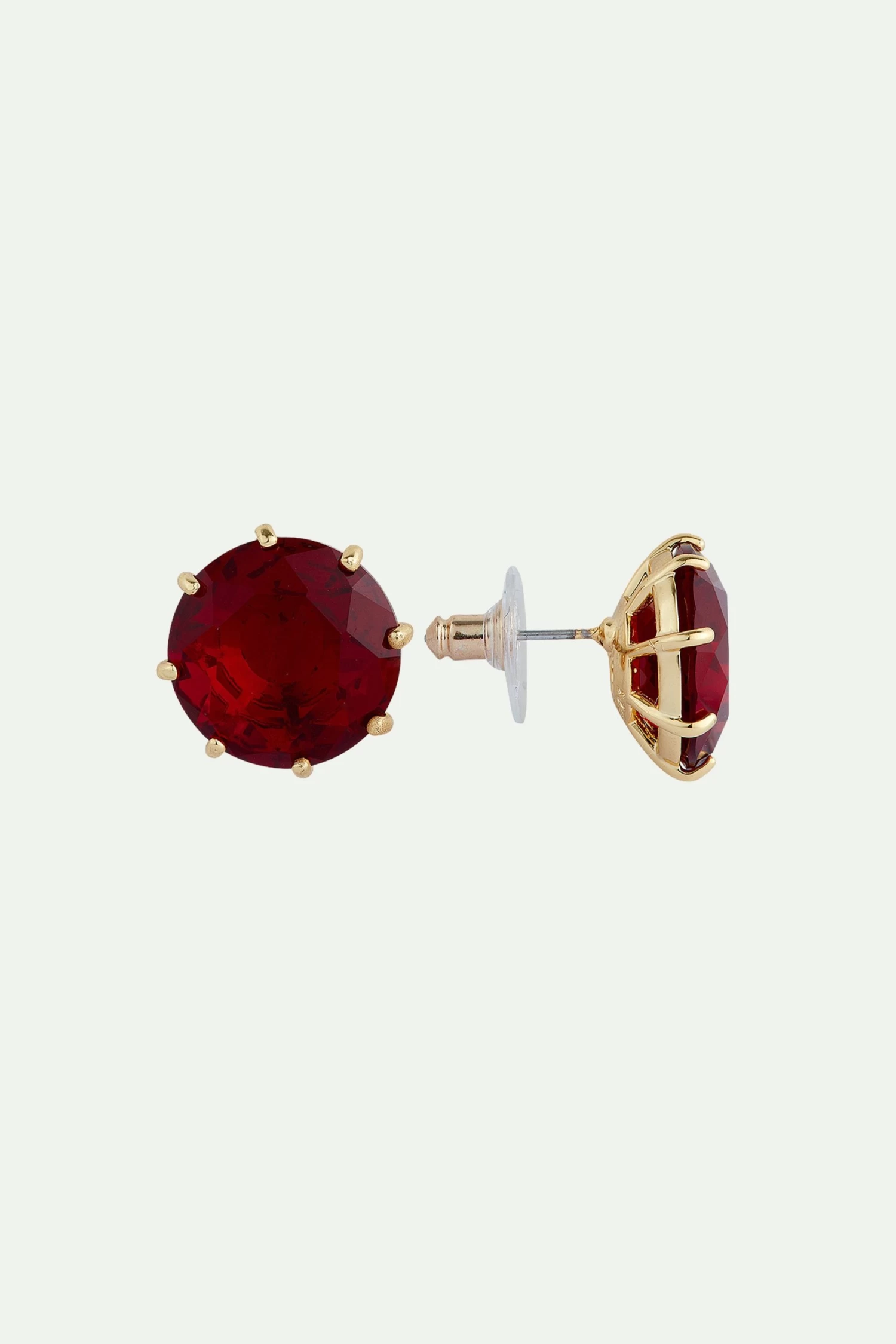 À la fois envoûtantes et élégantes, ces boucles d’oreilles pour femme présentent une grande pierre ronde rouge grenat. Déclinées en dormeuse et en tiges, ce bijou est à associer avec les bijoux fantaisie de la même parure pour sublimer toutes vos tenues. Boucles d’Oreilles : Laiton doré à l’or fin, verre facetté