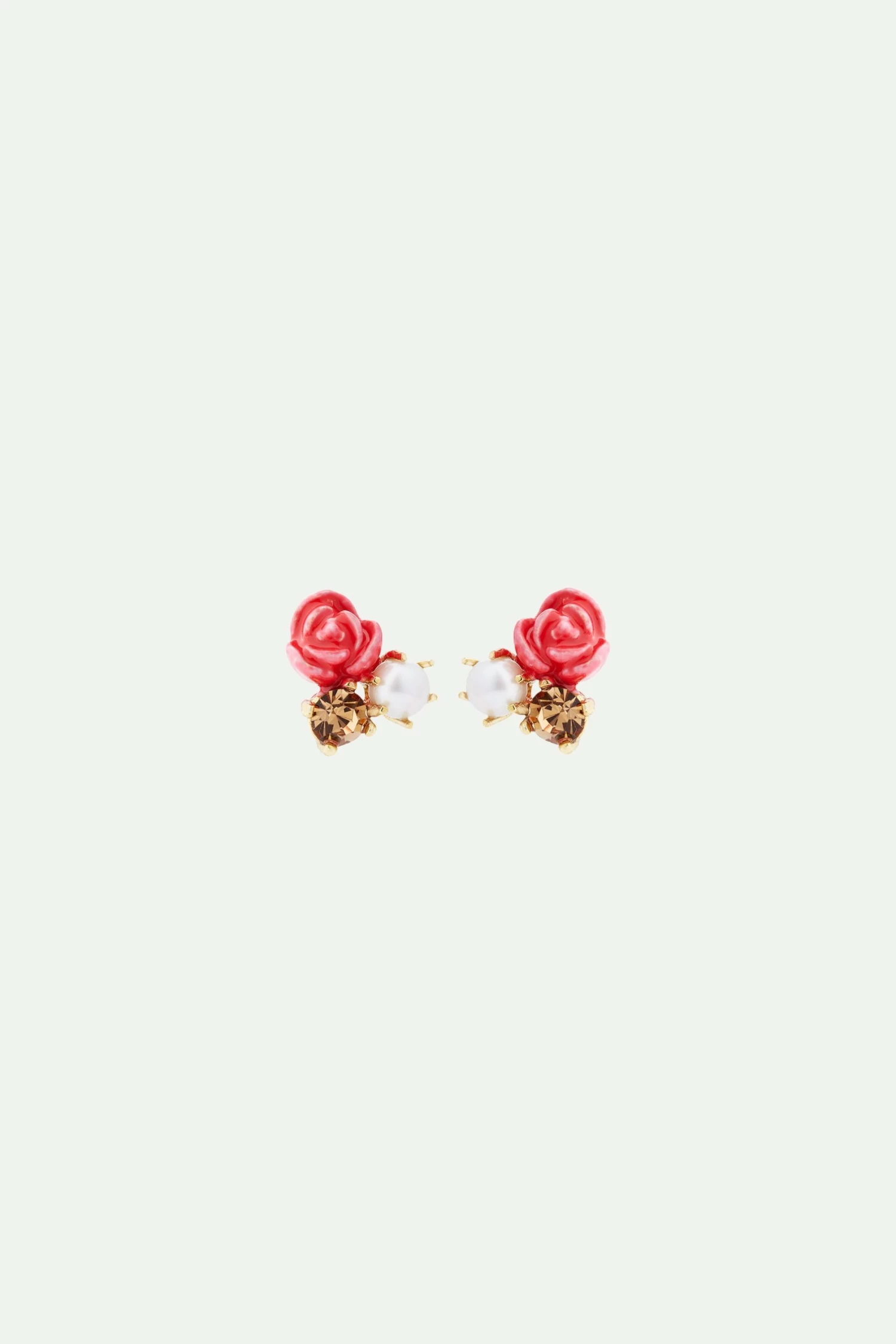 La collection Antica Rosa offre une magnifique parure de bijoux fantaisie qui respire la poésie romantique, avec des boucles d’oreilles ornées d’une rose, de perles de culture et d’une pierre. La forme arrondie de ces boucles d’oreilles les rend facilement portables au quotidien, en tant que bijoux discrets. Le trio de ces éléments rassemble une perle de culture, une rose peinte à la main ainsi qu’une pierre facettée couleur bronze, créant un ensemble harmonieux. Ce bijou fantaisie pour femme peut être porté seul ou combiné avec le collier plastron serti de pierres facettées pour un effet encore plus élégant. Boucles d’Oreilles : Laiton doré à l’or fin, émaillé à la main, perle de culture, cristal facetté.