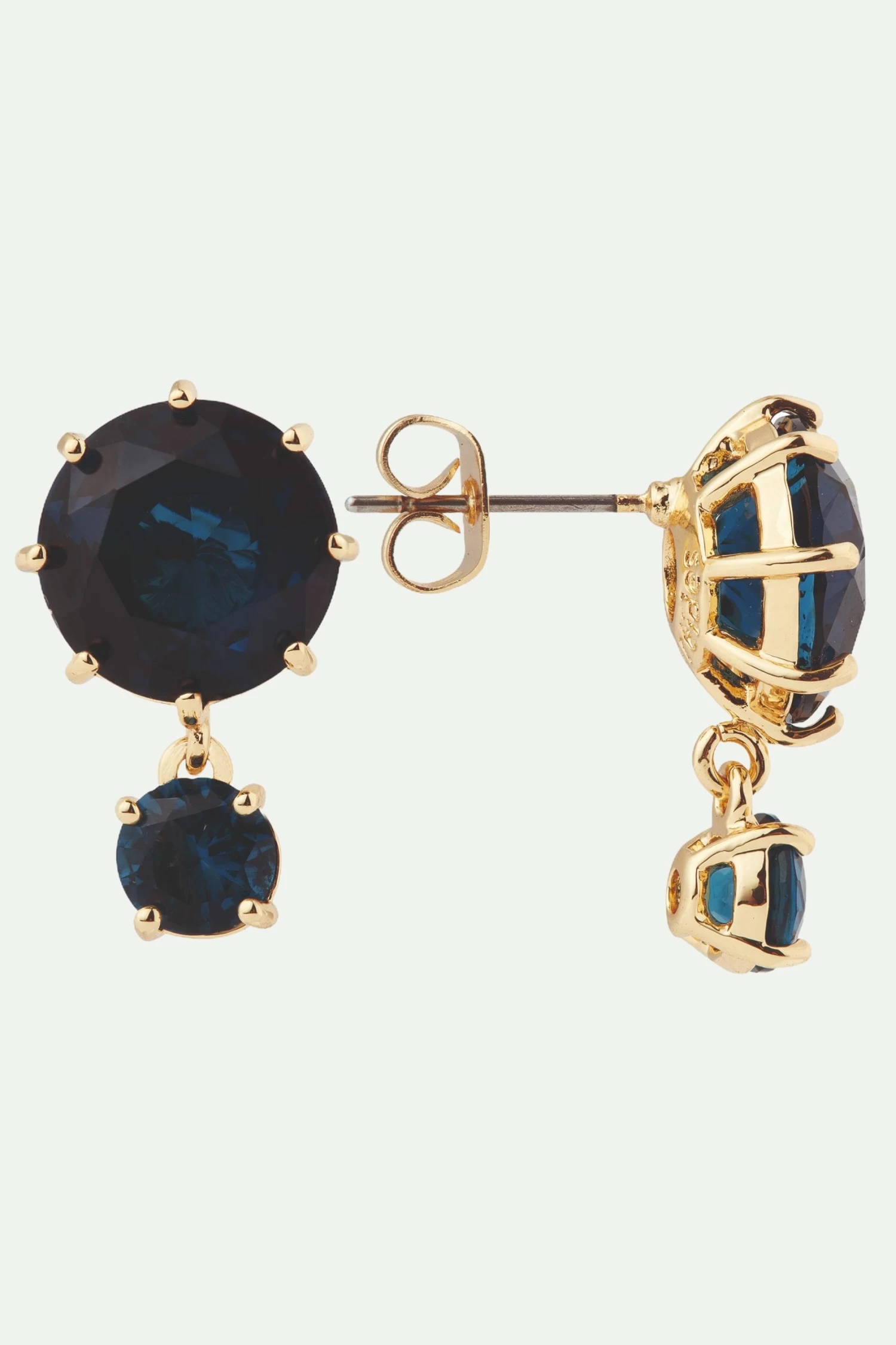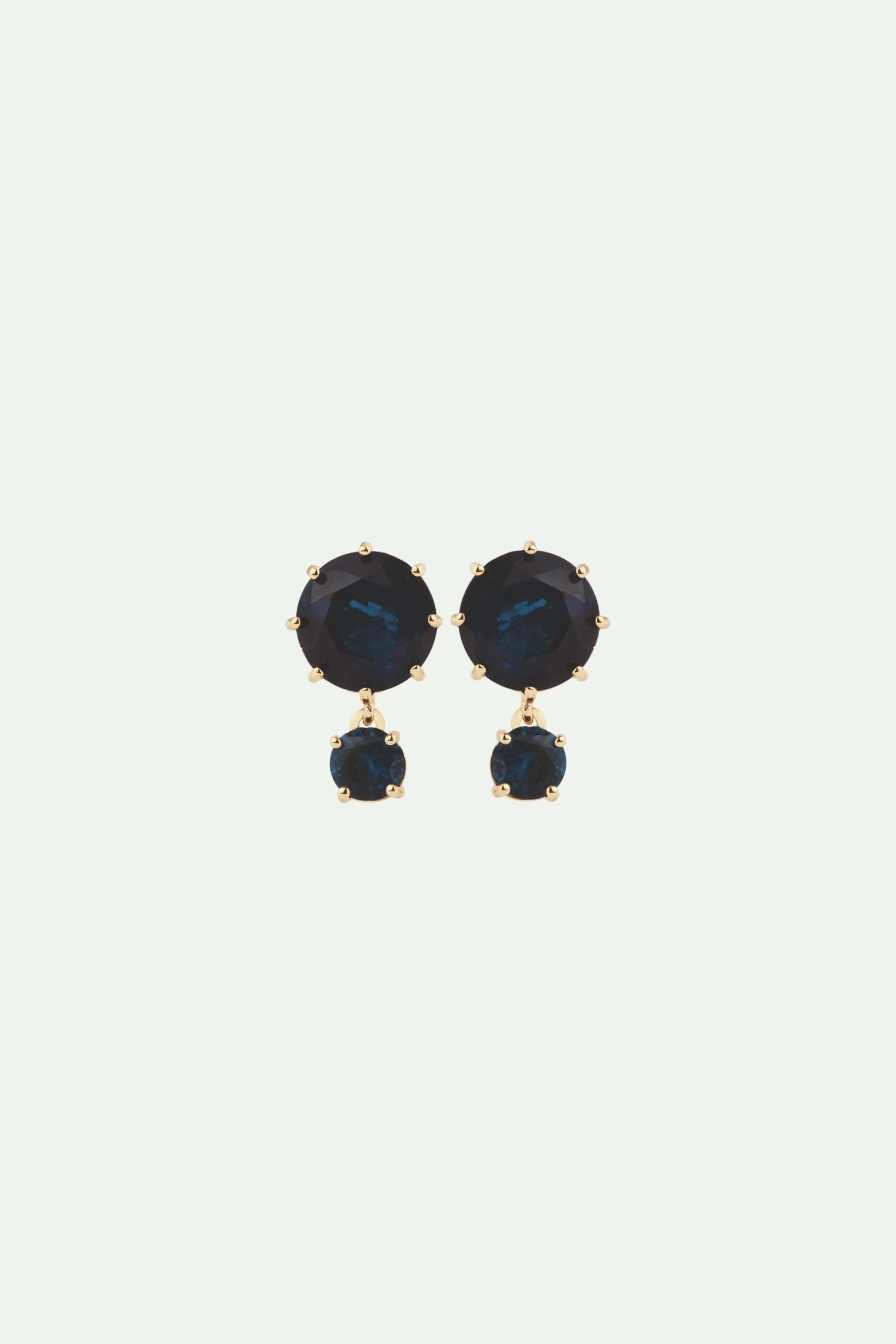 Les Néréides lance une nouvelle teinte pour sa collection La Diamantine, qui tire son inspiration de la brillance de la surface de l’océan. Cette paire de boucles d’oreilles tiges se compose de deux pierres rondes, dont une de taille moyenne et l’autre plus petite suspendue pour apporter du mouvement. Ces boucles d’oreilles pour femmes peuvent être portées seules ou associées avec une bague fine en 6 pierres, faisant partie de cette parure féminine et élégante, La Diamantine Bleu Océan. Boucles d’Oreilles Tiges : Laiton doré à l’or fin émaillé à la main et verre facetté.