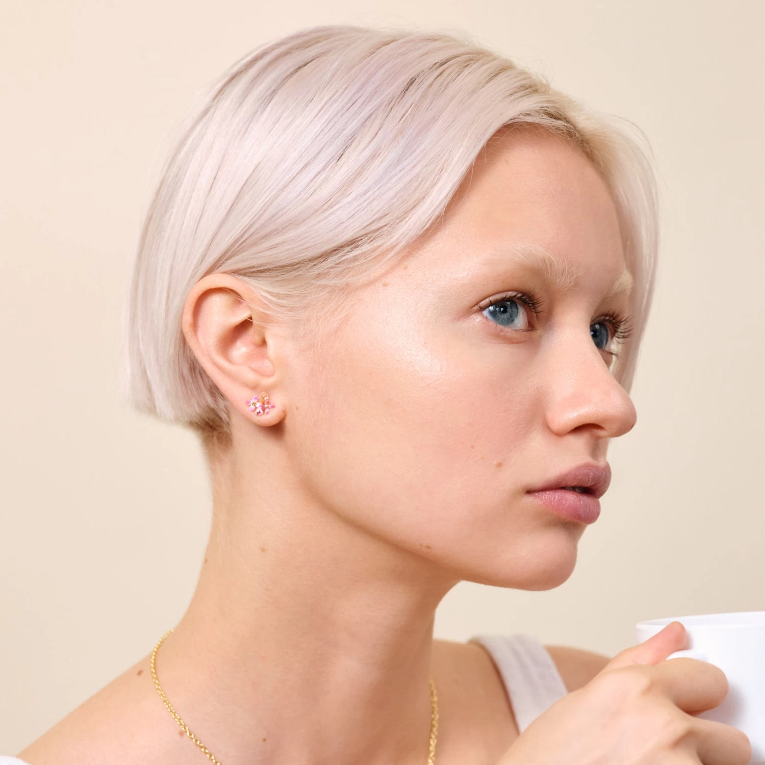 Cette paire de boucles d’oreilles lilas et perle en verre taillé représente la poésie printanière à travers trois délicates fleurs de lilas, chacune racontant une histoire florale distincte. Ces fleurs s’épanouissent avec élégance, l’une d’entre elles capture l’instant magique de l’éclosion, révélant des pétales délicats en plein déploiement. Suspendue avec grâce au bas de chaque boucle, une perle en verre taillé ajoute une touche de sophistication. Chaque perle apporte une subtile note d’éclat formant ainsi un complément parfait à la délicatesse des lilas. Porter ces boucles d’oreilles équivaut à suspendre un petit jardin printanier à chaque oreille. Elles transmettent l’essence du lilas où l’éclosion représente l’espoir renouvelé et la perle taillée la promesse d’une beauté éternelle. Pour une parure complète et harmonieuse, associez ces boucles d’oreilles au collier plastron fleurs de lilas de la même collection.