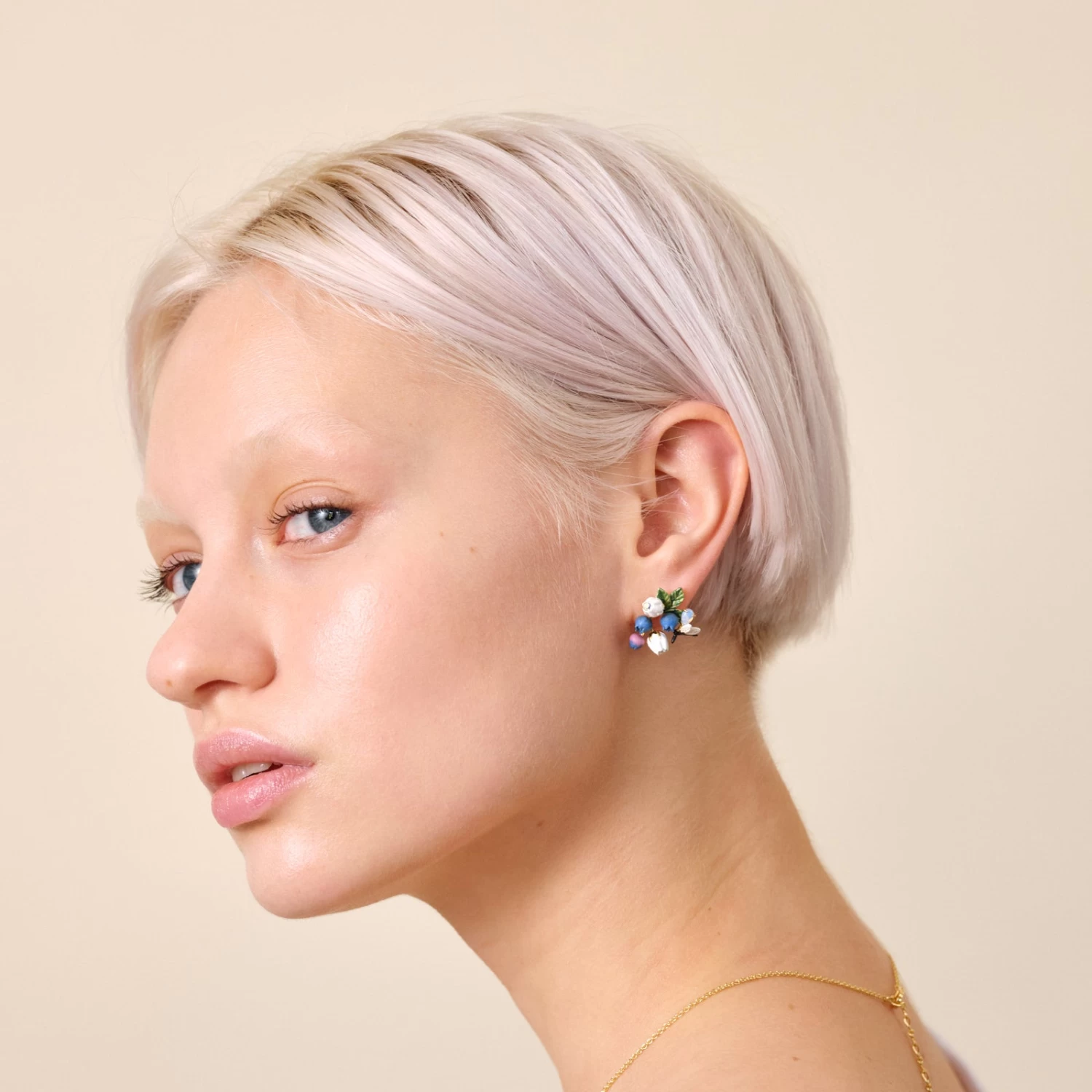 Plongez dans l’éclat magique de la nature avec ces boucles d’oreilles tiges. Chaque paire est une fusion artistique de myrtilles fraîches, de délicates fleurs blanches et d’une luciole étincelante. Les myrtilles représentent la fraîcheur sucrée de la saison estivale, se mêlent aux fleurs blanches dans une danse délicate créant une harmonie naturelle et poétique. La luciole, dont le corps est constitué d’une goutte de verre opalescent apporte une touche de féérie et une lueur étincelante à cet ensemble capturant l’esprit enchanteur de la nuit. Ces boucles d’oreilles ajoutent une note de mystère et de charme, offrant un look chic et captivant, parfait pour une soirée mémorable sous les étoiles.
