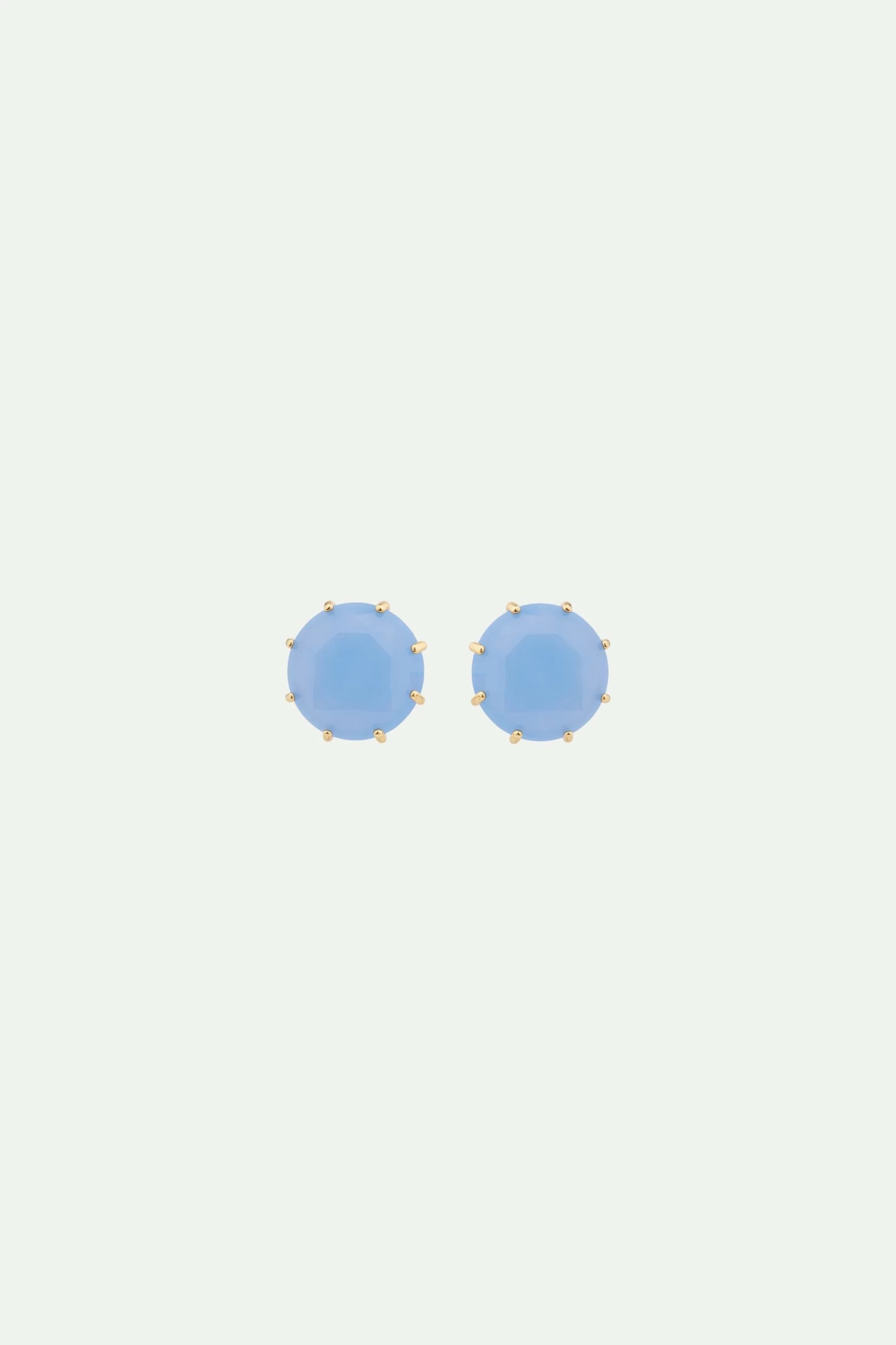 Collection iconique de La Maison Les Néréides, La Diamantine se décline en bleu ciel cette saison. Parez vos oreilles de cette paire, composée de pierres rondes en verres taillés à la main serti griffe. Cette paire de boucles d’oreilles tiges est l’accessoire idéal pour une tenue distinguée. Boucles d’Oreilles Tiges : Laiton doré à l’or fin, verre facetté.