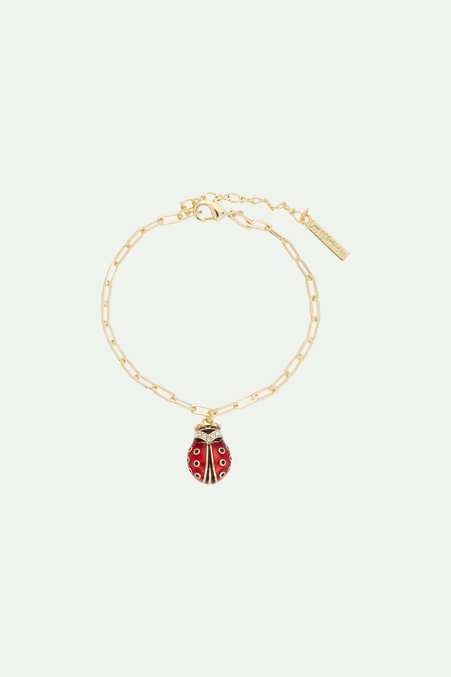 Avec cette chaîne maille rectangle au bout de laquelle est suspendue une coccinelle émaillée et sertie de cristaux facettés, ce bracelet est d’une délicatesse infinie. Avec lui, vous embarquerez dans un voyage empli de bonheur et de chance. Retrouvez la bague ajustable coccinelle avec laquelle vous pourrez associer tous les autres bijoux en forme de coccinelle de la collection Les Amulettes Bracelet Fin : Laiton doré à l’or fin, émaillé à la main, chaîne maille rectangle et cristaux facettés.