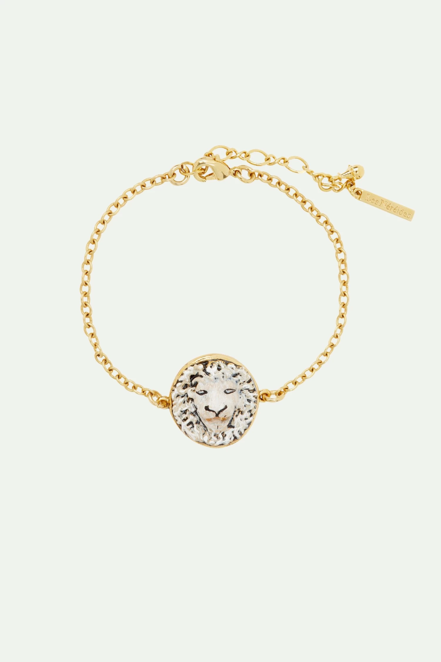 Bracelet fin, chaîne en laiton doré à l’or fin, tête de lion.
