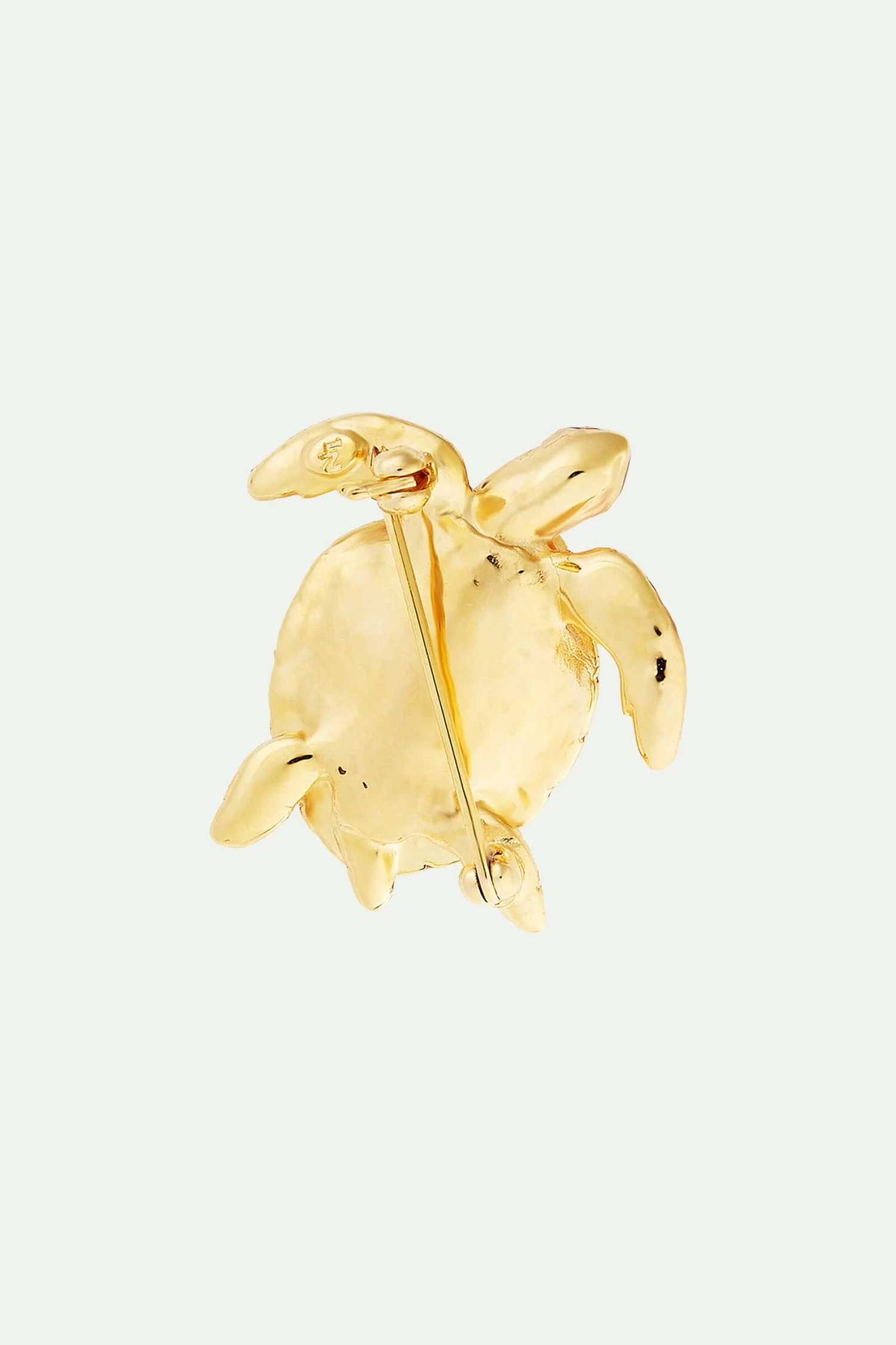 Symbole de bénédiction, la tortue fascine, portez sur vous la créature la plus sage des fonds marins avec une broche originale signée la Maison Les Néréides. La carapace couleur or de ce bijou pour femme offre des détails soignés avec l’émail qui vient recouvrir la tortue de petits reflets d’un blanc lumineux. Broche : Laiton doré à l’or fin, coquillage émaillé à la main