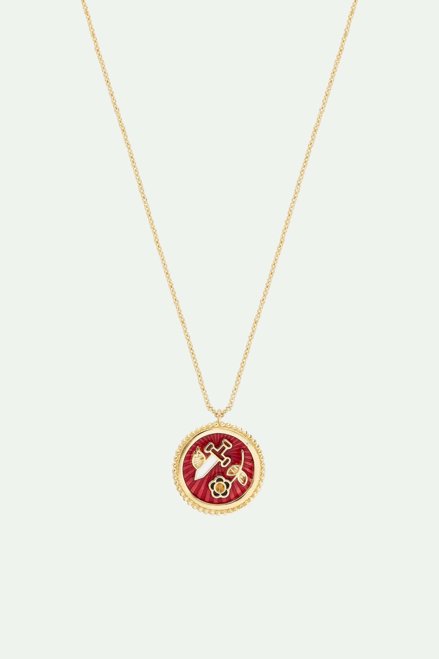 A travers la collection Art Divinatoire, La Maison Les Néréides vous invite à tirer les cartes du Tarot de Marseille. Le collier fin l’Impératrice a la particularité d’être réversible, comme les médaillons de la collection Constellation. L’impératrice symbolise l’art de la communication et la créativité, des traits de caractère puissants, permettant d’accomplir de grands projets. Collier Fin : laiton doré à l’or fin, émaillé à la main, contour perlé.