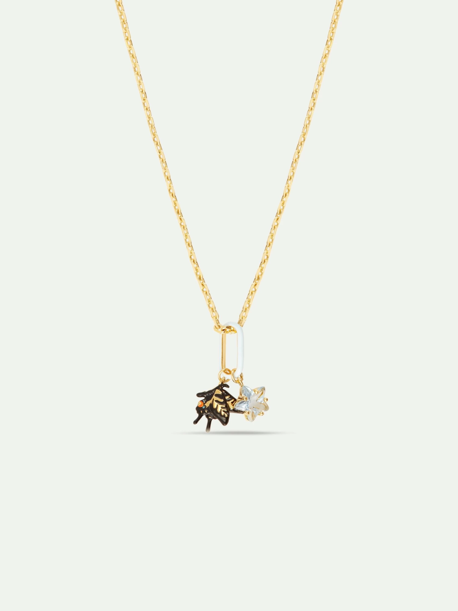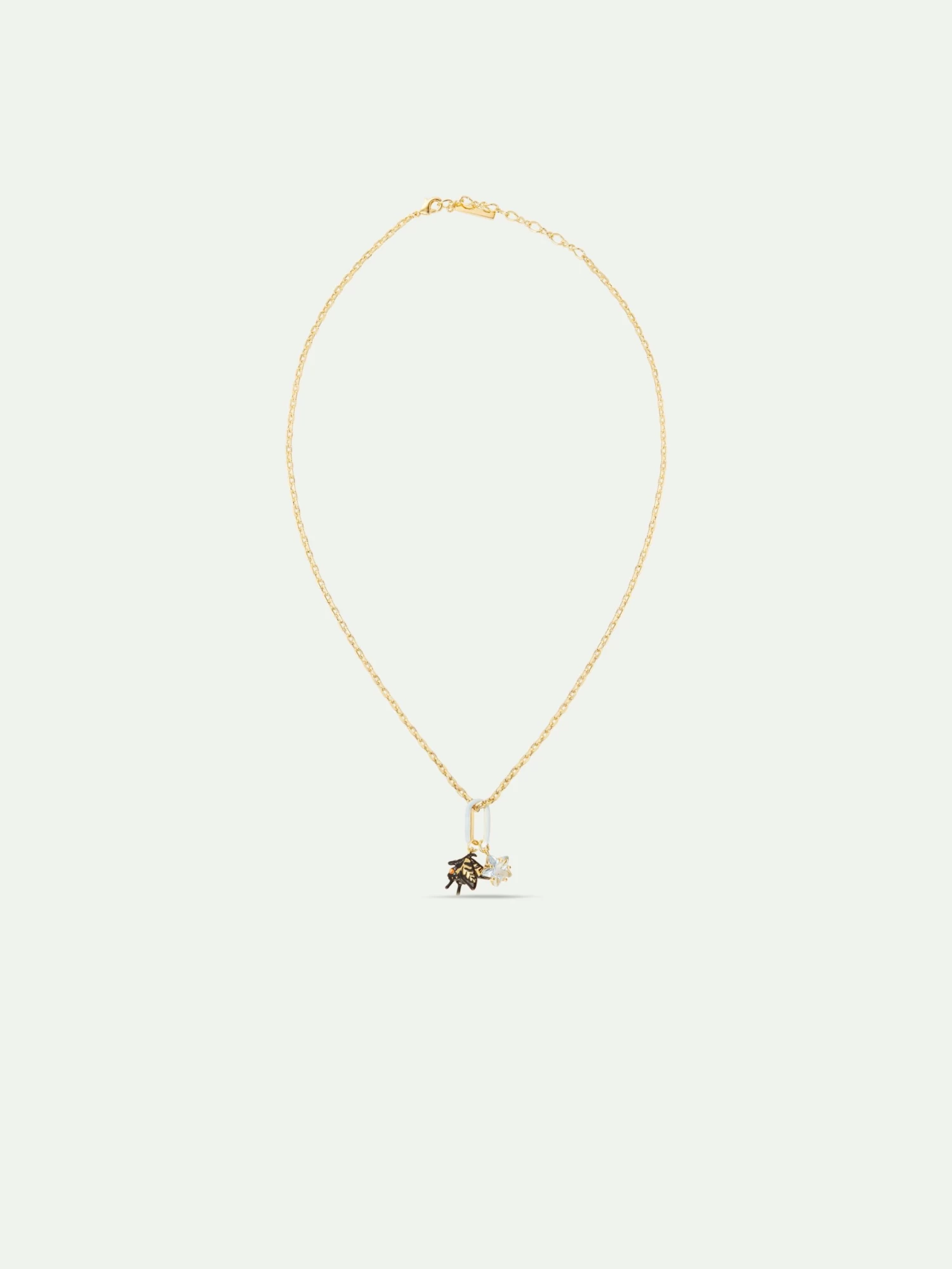 Collier pendentif, charm’s étoile facettée et papillon machaon accrochés à un anneau, chaîne en laiton doré à l’or fin.