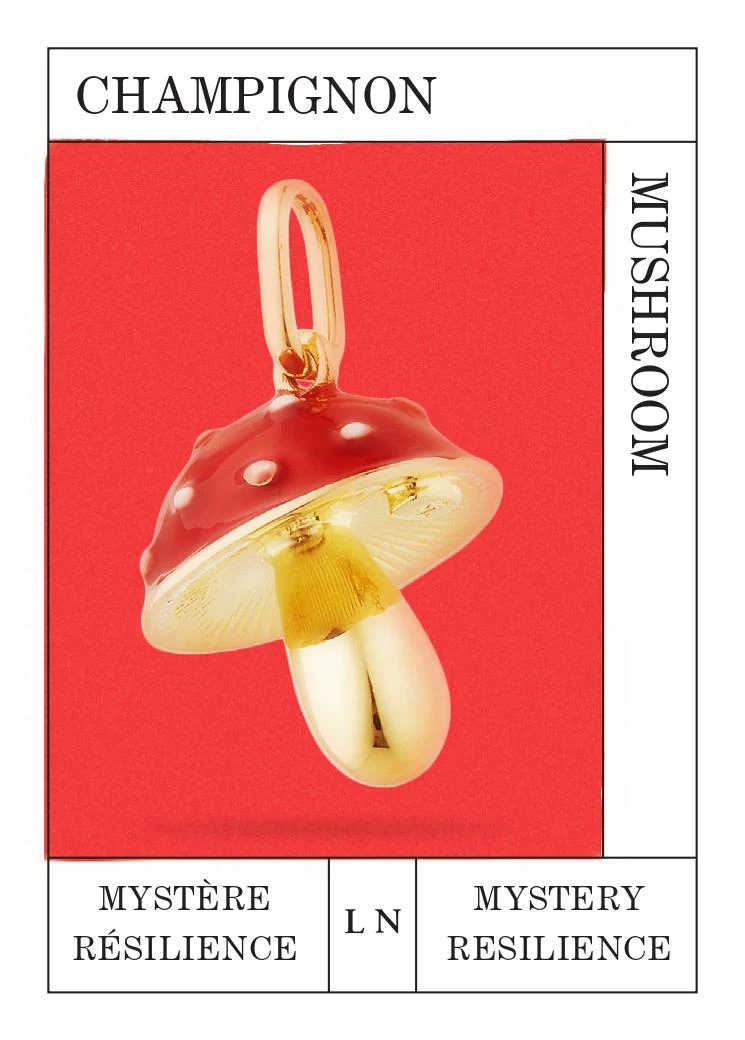 Pendentif champignon émaillé et doré à l’or fin.
