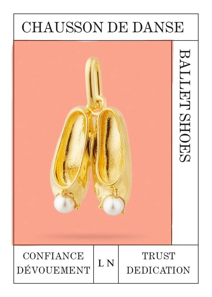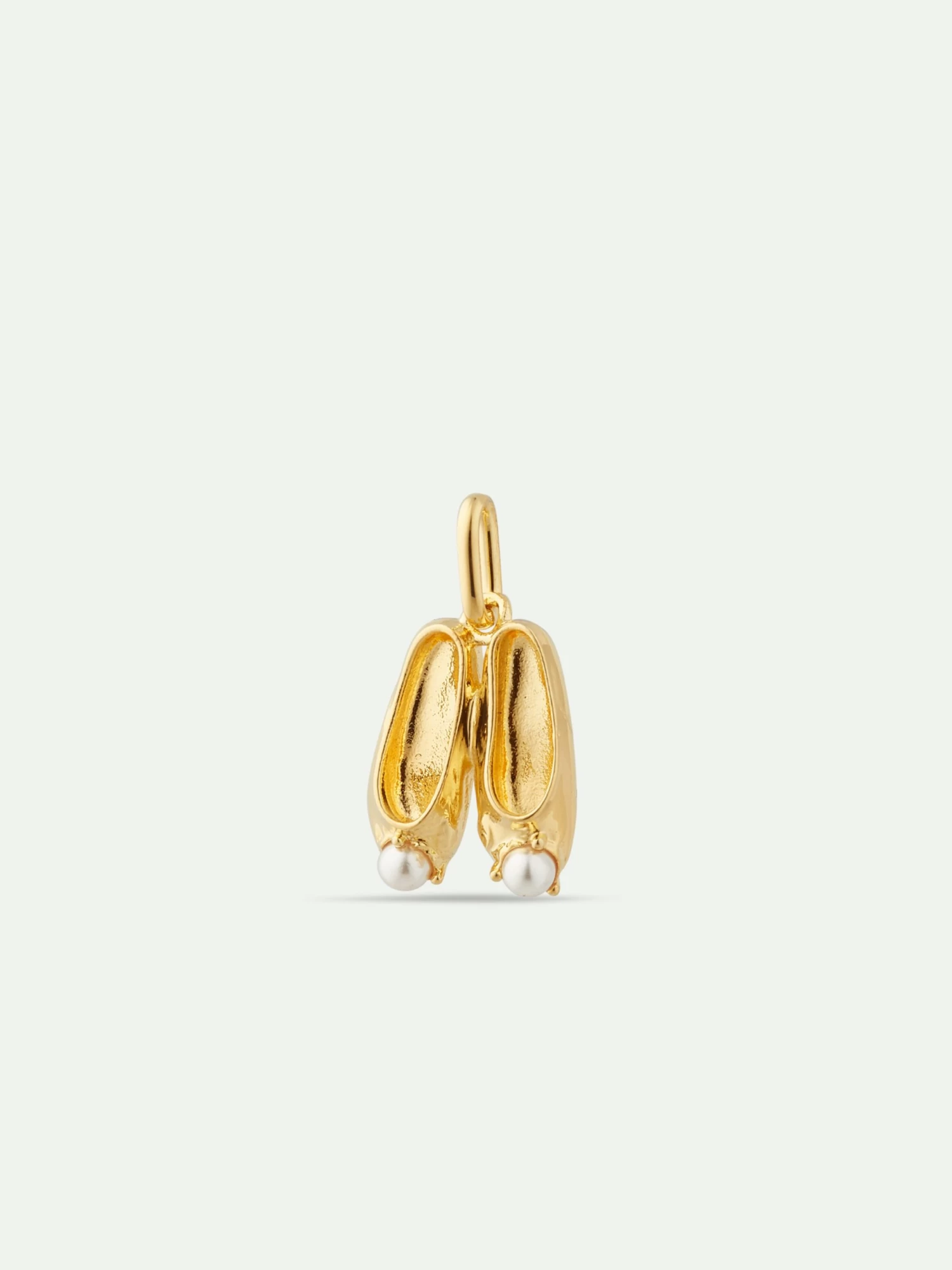 Pendentif chausson de ballerine doré à l’or fin, orné d’une perle fantaisie.