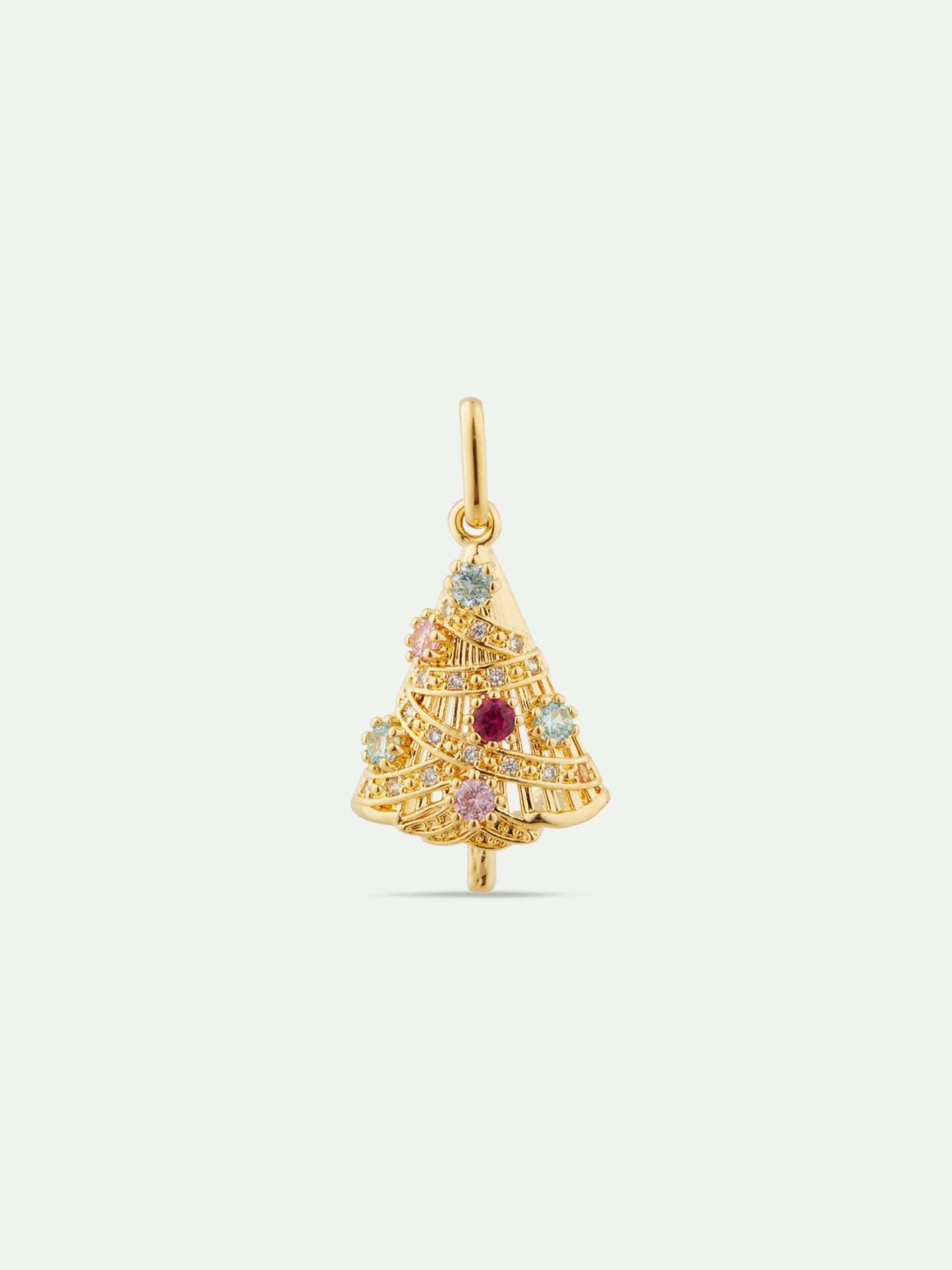 Pendentif sapin de Noël doré à l’or fin, orné de cristaux colorés.