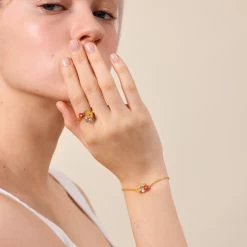 Pendentif seau de champagne doré à l’or fin, orné de cristaux colorés.