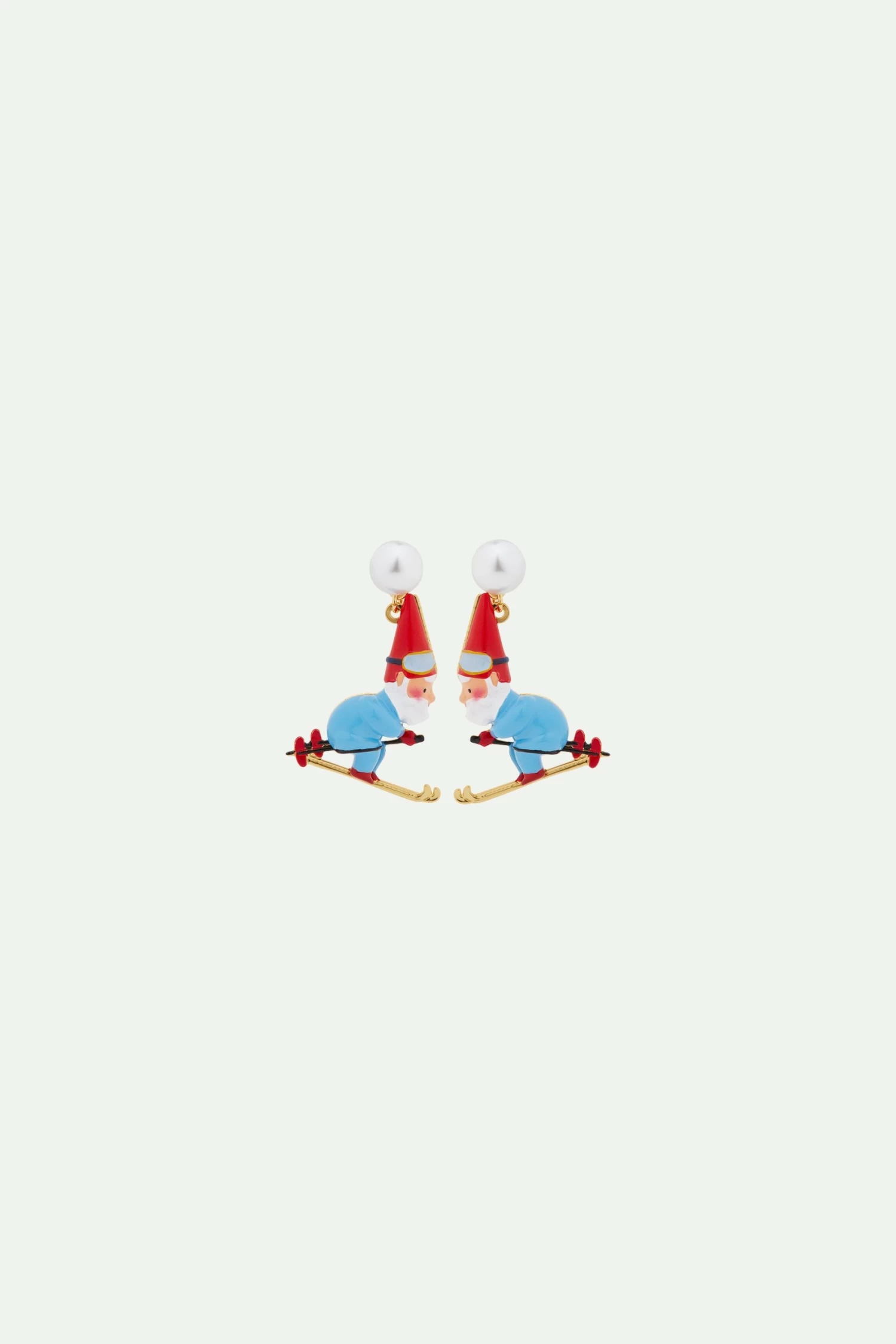 Avec le retour du froid vient celui de la minuscule famille des Champimignon, discrète amatrice de sports d’hiver. Sur ces boucles d’oreilles, c’est au tour du père de famille de se mettre en scène sur sa paire de ski. Glissant sur une pente, il met en avant ses talents de skieur pour impressionner sa famille de nains de jardin. Habillé d’une combinaison bleue, d’un chapeau rouge et des lunettes de ski sur le front, partez à l’aventure avec la famille Champimignon grâce à ces boucles d’oreilles, véritable bijou de créateur signé N2 by Les Néréides. Boucles d’Oreilles Clip : Laiton doré à l’or fin, émaillé à la main et perle fantaisie.