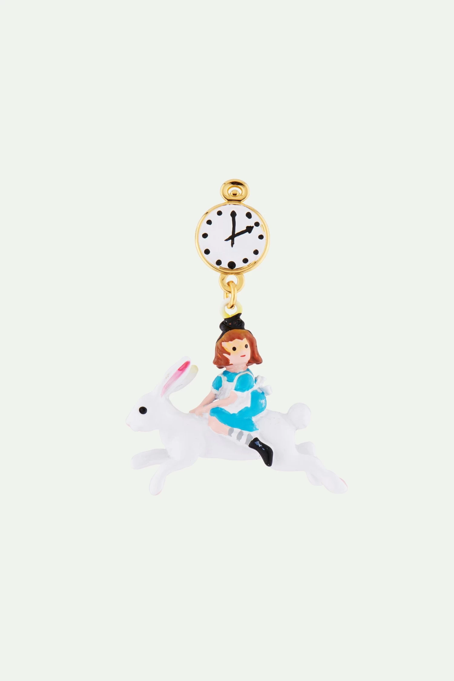 Accent psychédélique pour cette paire de boucles d’oreilles tige Alice à dos de Lapin Blanc surmonté d’une montre. Une pièce déjà iconique de la collection Le Rêve d’Alice comme seul N2 By Les Néréides sait nous concocter. Boucles d’Oreilles Tiges : laiton doré à l’or fin, émaillé à la main.