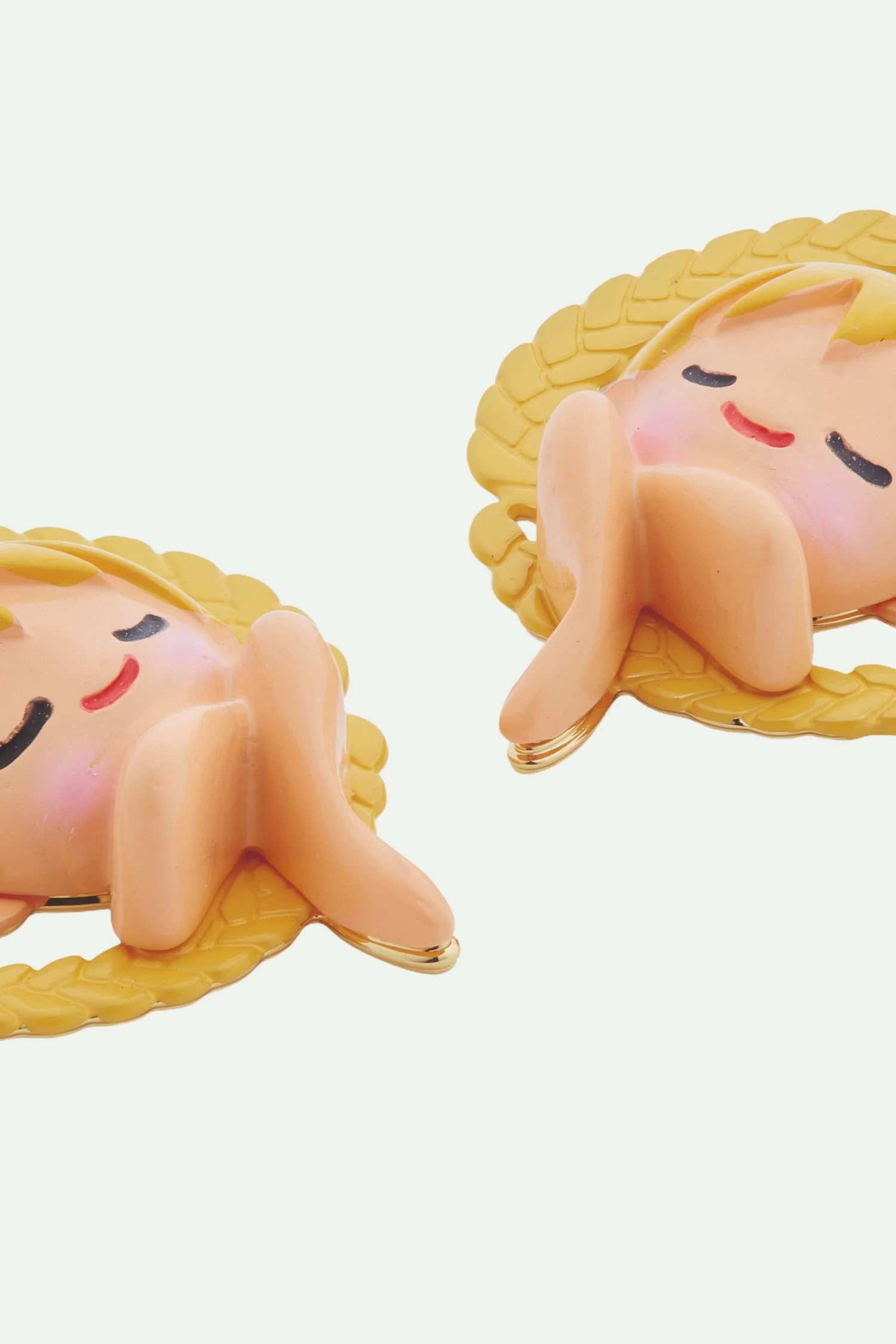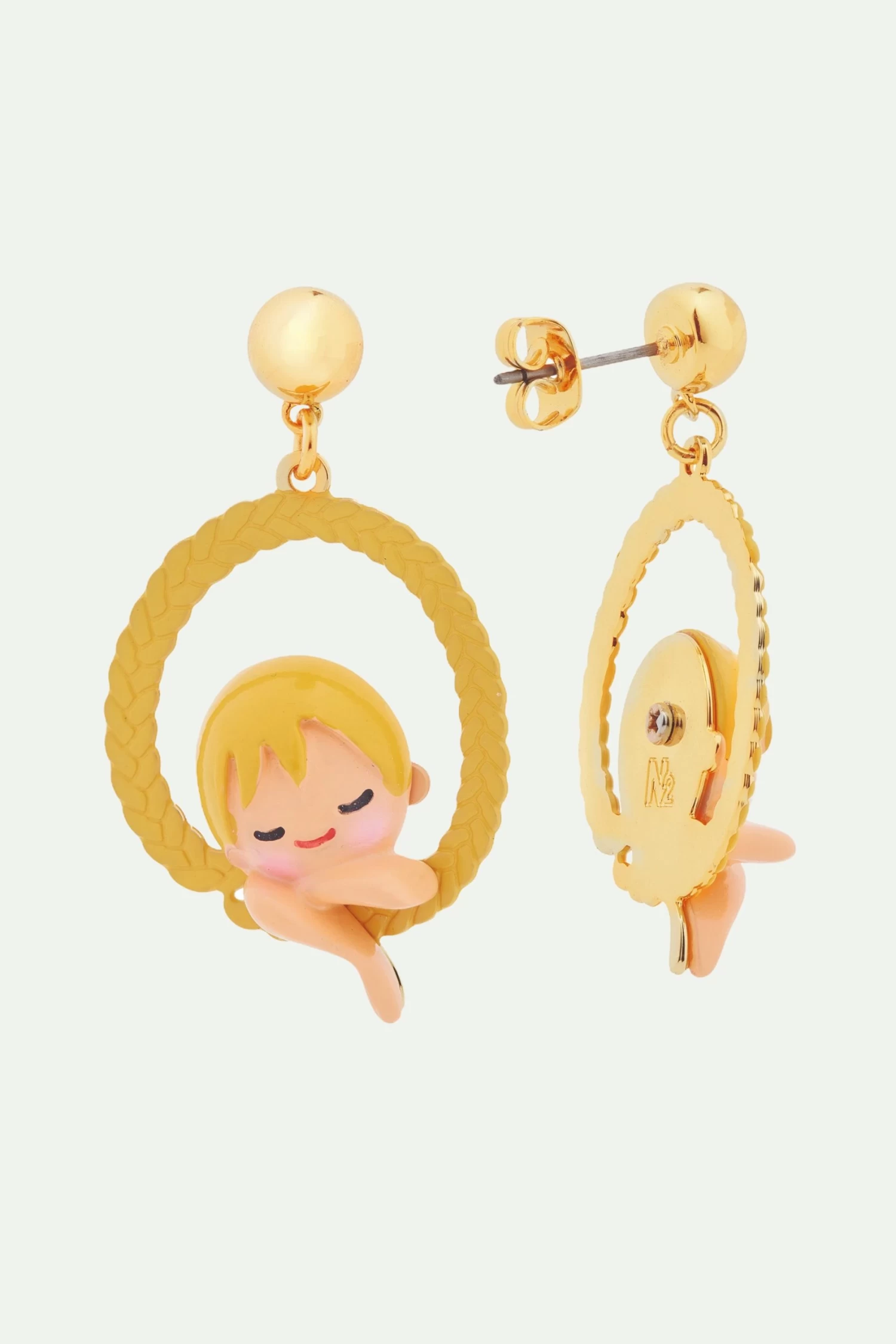 Plongez dans un monde de rêves avec ces boucles d’oreilles tiges haute fantaisie mettant en scène la belle Raiponce, endormie sur ses longs cheveux blonds et attendant l’arrivée de son prince charmant. Laissez-vous emporter par l’esprit féerique de cette collection de bijoux de créateur qui donne vie au célèbre conte populaire allemand recueilli par les illustres frères Grimm. Boucles d’Oreilles Tiges : Laiton doré à l’or fin et résine émaillée à la main.