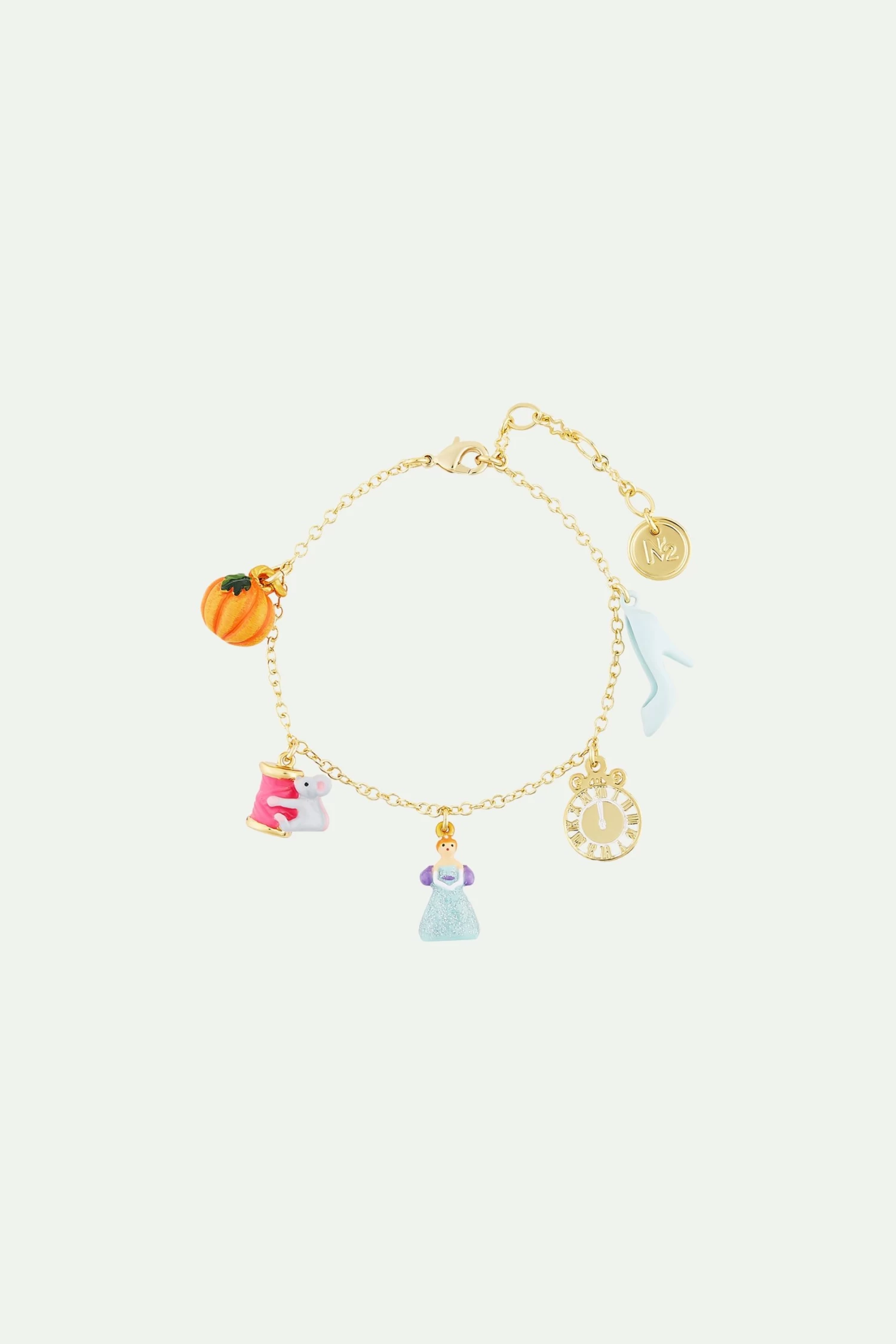 Craquez pour ce bracelet charm’s original signé N2 by Les Néréides. Retrouvez la citrouille, la souris et sa bobine de fil, Cendrillon, l’horloge et le soulier sur ce bracelet. Ce bijou fantaisie saura vous replonger en enfance.