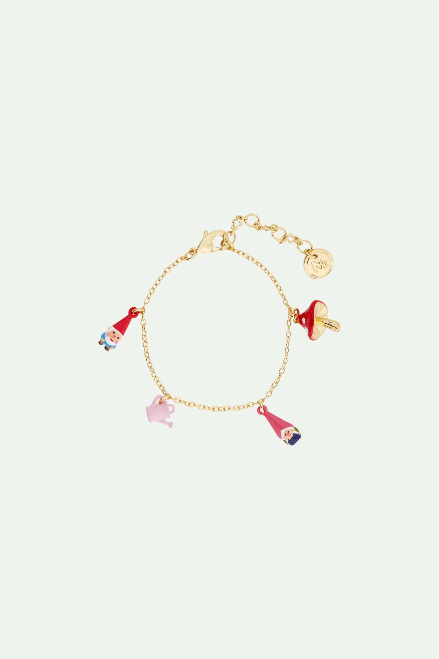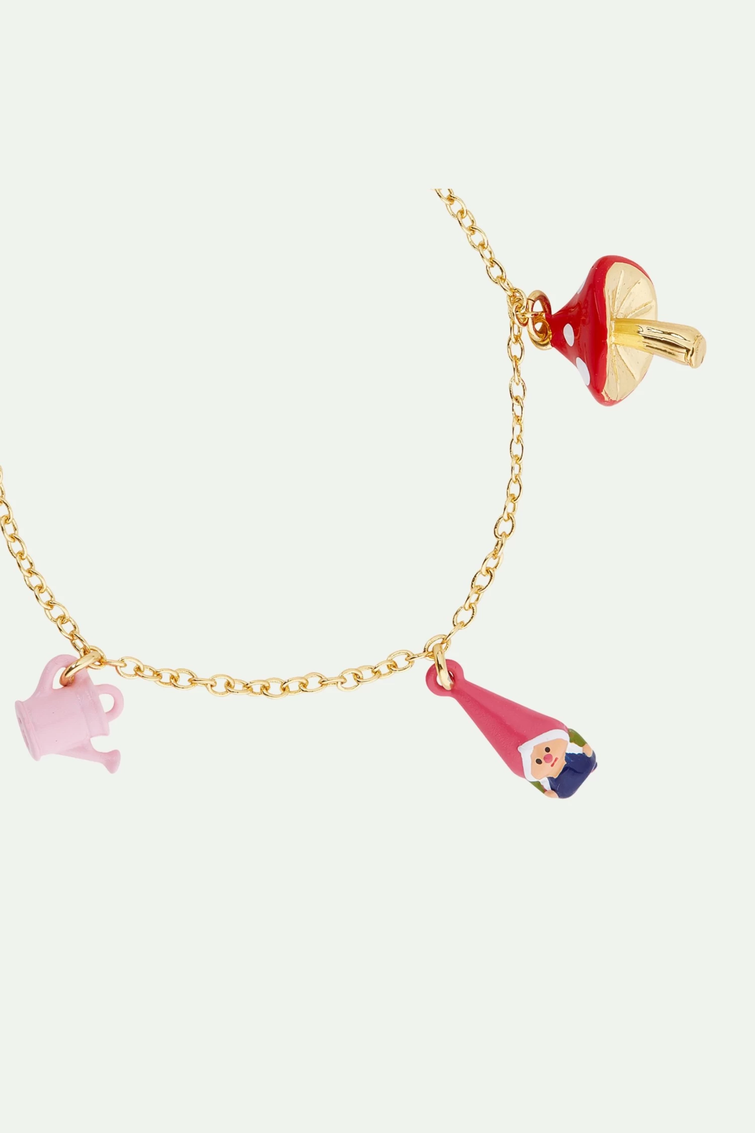 Accrochés à une fine chaîne dorée à l’or fin, retrouvez les nains de jardin de la famille Les Champimignon. Accompagnés d’un champignon rouge et d’un arrosoir rose pastel, craquez pour ce couple de nains de jardin aussi attachants que drôles. Associez ce bijou porte-bonheur au collier pendentif famille des champimignon pour former une parure de bijoux assortis N2 by Les Néréides.