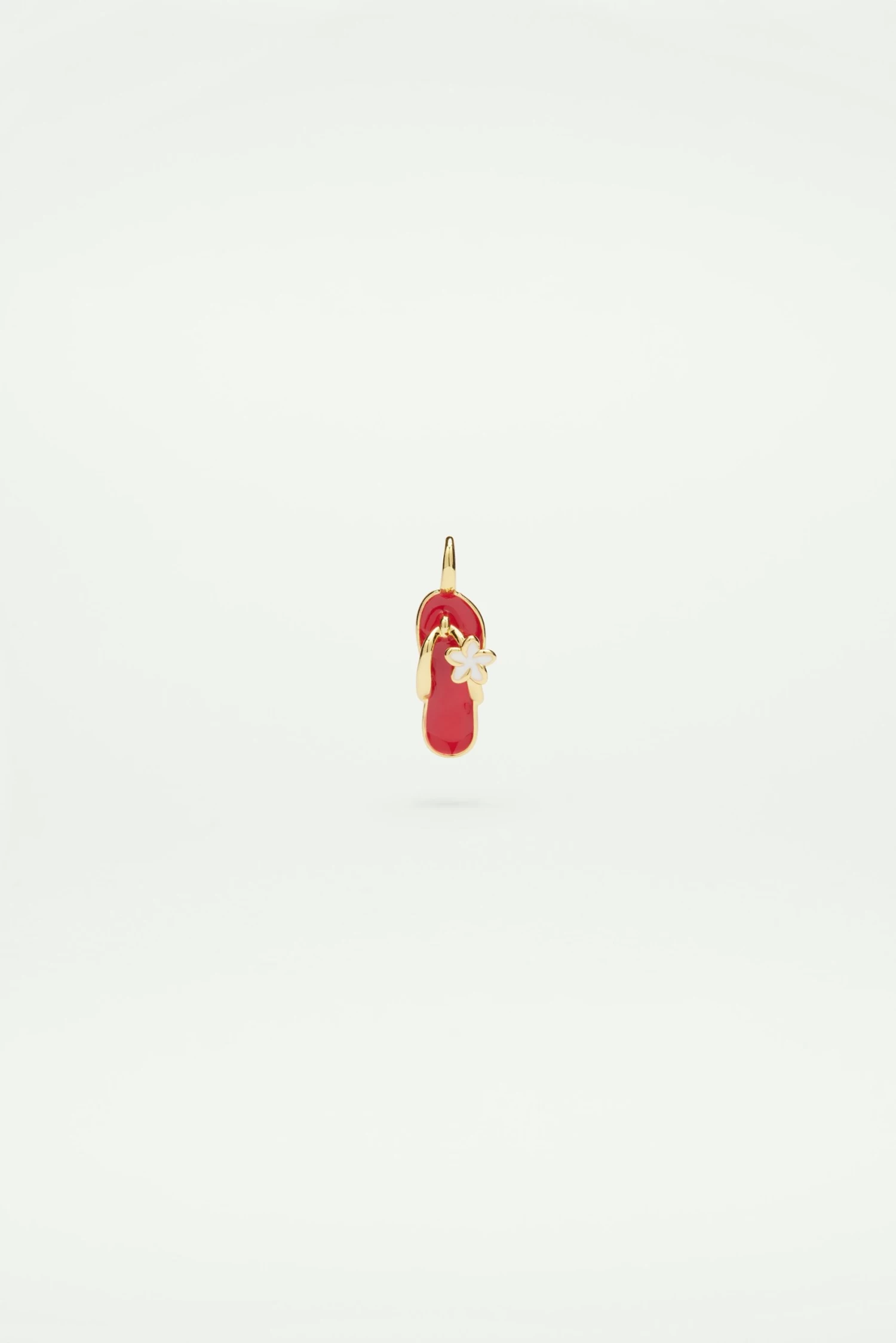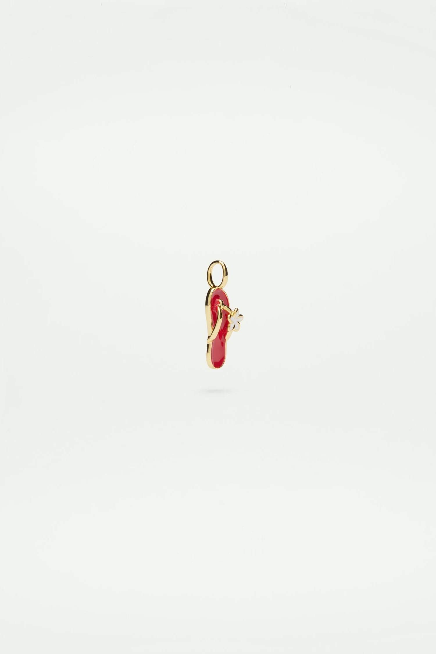 Charm’s sandale de plage rouge, orné d’une petite fleur blanche, dorure à l’or fin. A accrocher seul ou en accumulation à votre collier, bracelet ou boucle d’oreille.