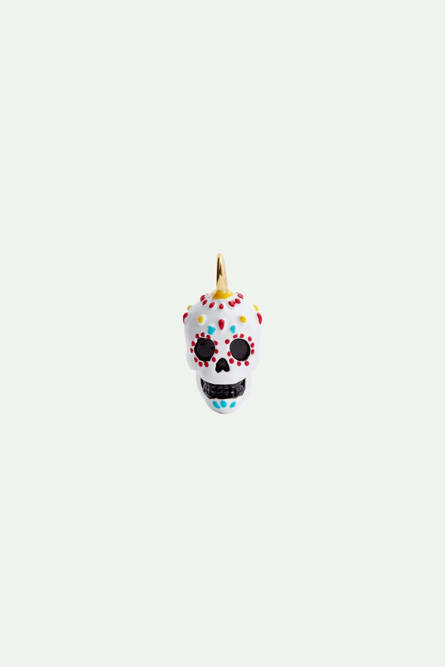 Plongez au cœur de la culture mexicaine avec ce charm’s représentant une tête de mort célébrant ‘El Día de los muertos’, une fête typique et extrêmement symbolique au Mexique. Cet accessoire présente un crâne blanc coloré de bleu, de rouge et de jaune, de quoi égayer votre tenue du jour. Vous pourrez aussi le porter spécialement à l’occasion d’Halloween ou pour une soirée à thème.