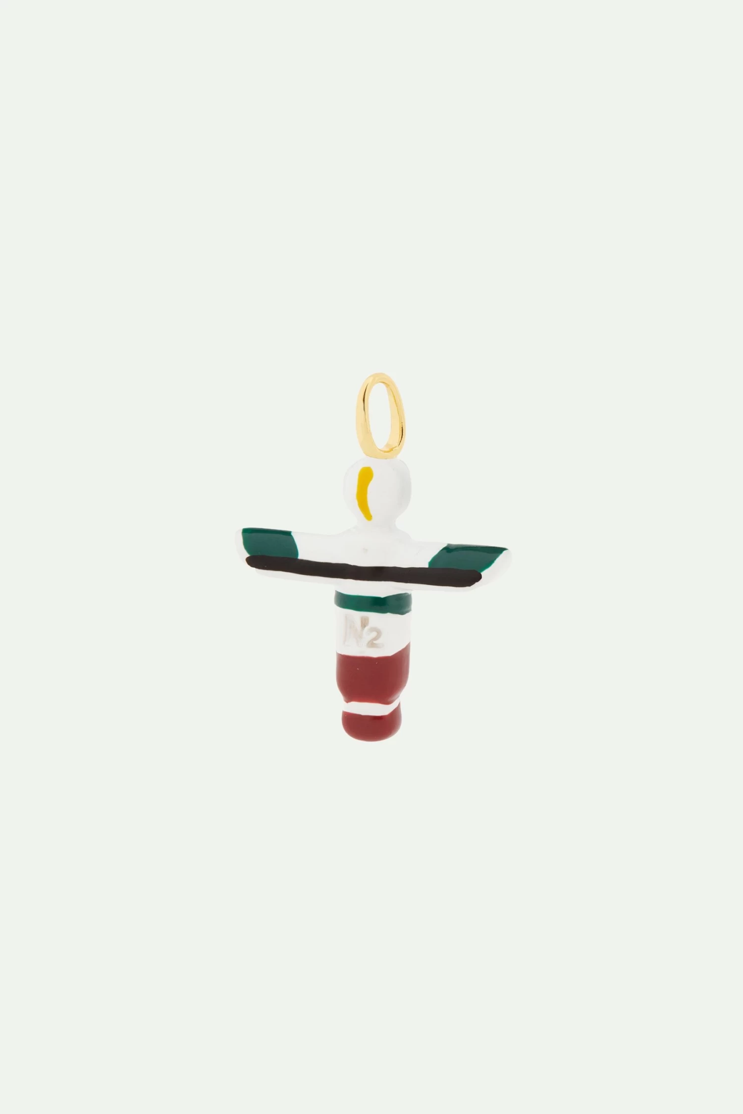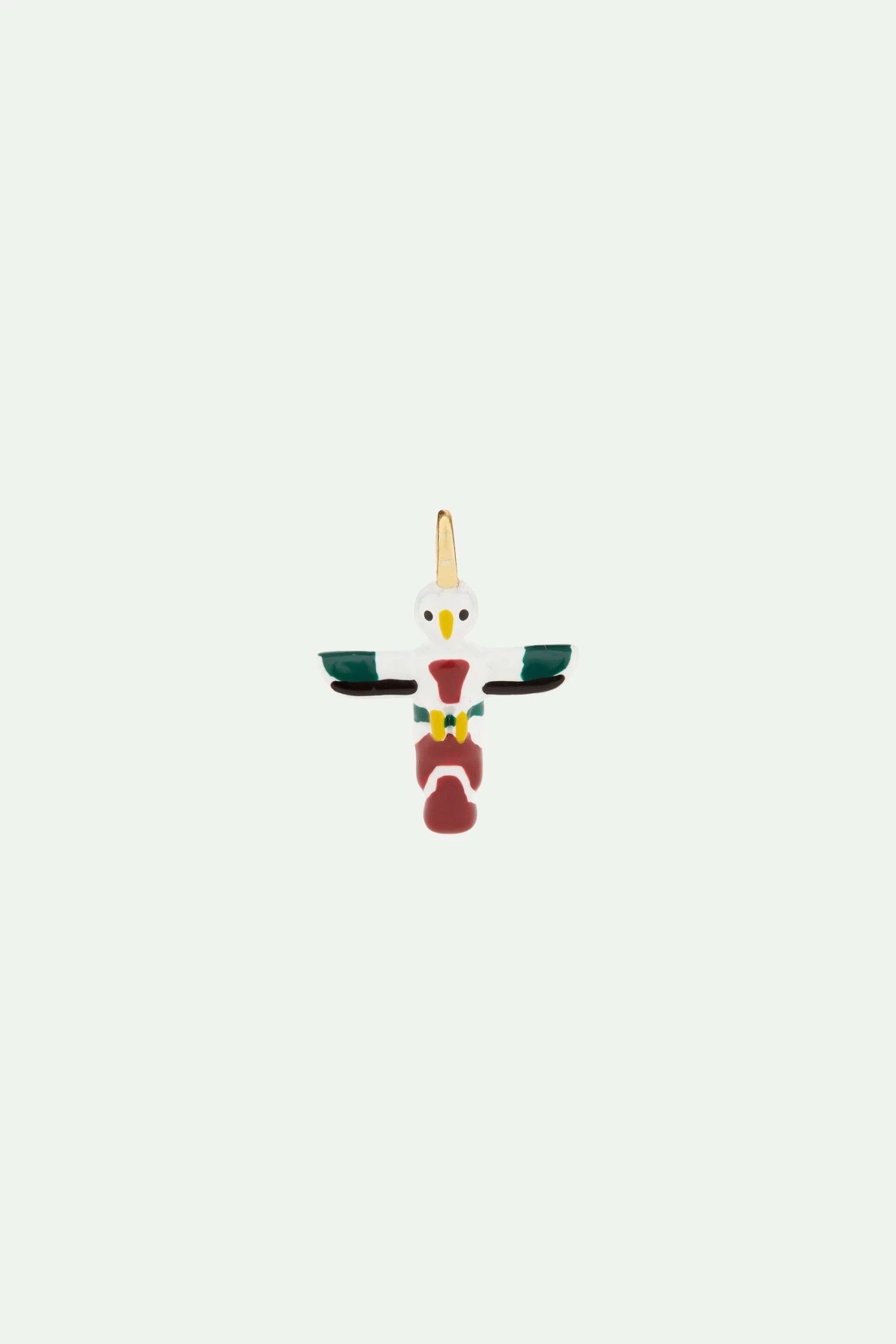 La culture des grands lacs nord-américains est riche en symboles, dont le totem, que l’on retrouve dans la collection de Charm’s N2 by Les Néréides, inspirée par le Canada. Le charm’s totem représente un aigle, figure mythique peinte à la main en utilisant des couleurs telles que le marron, le vert et le blanc. Avec ce charm’s, ainsi que d’autres comme le charm’s attrape-rêves, créez votre propre histoire canadienne en les accrochant sur une chaîne de collier doré ou en les suspendant sur une paire de boucles d’oreilles créoles. Charm’s : Laiton doré à l’or fin émaillé à la main.