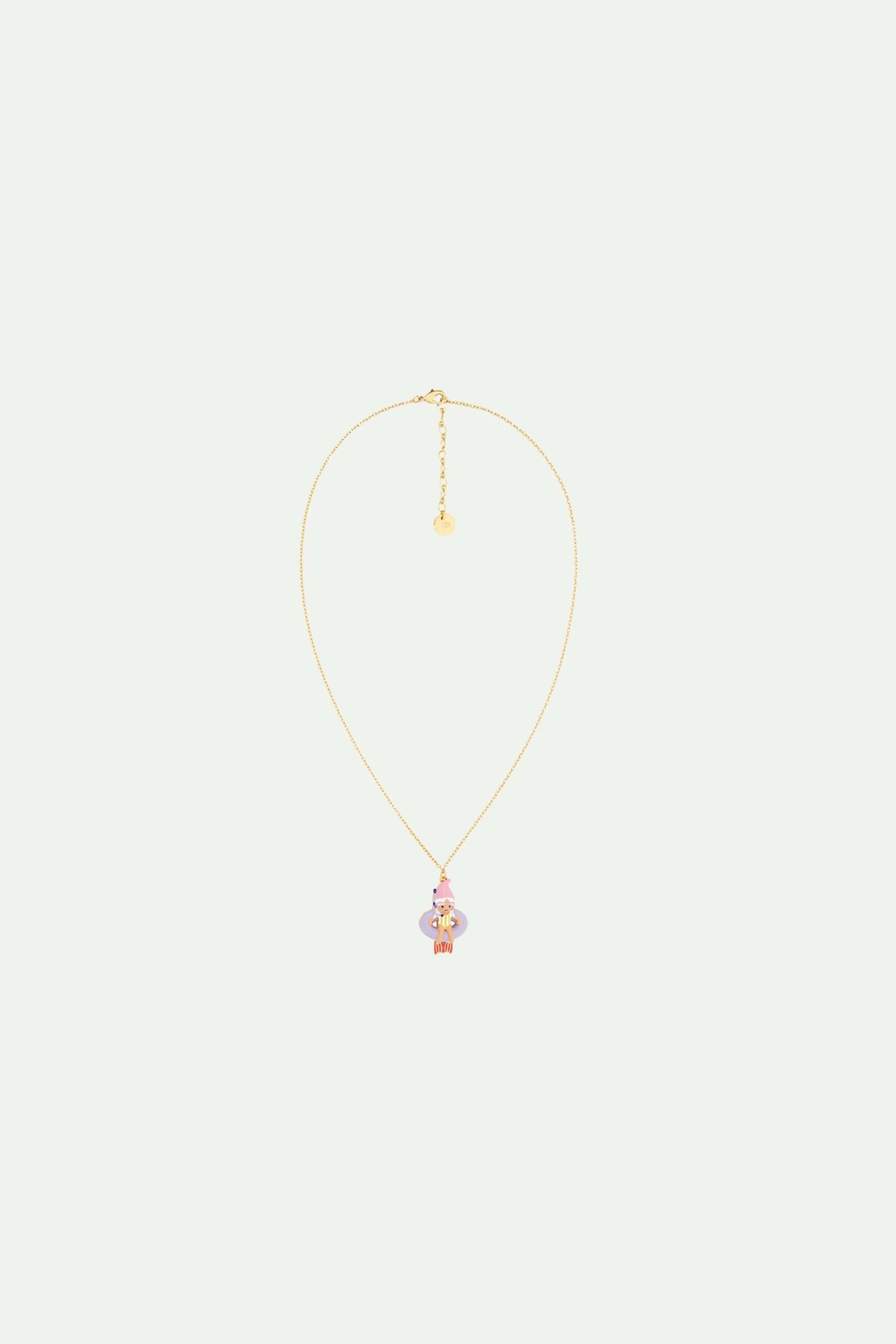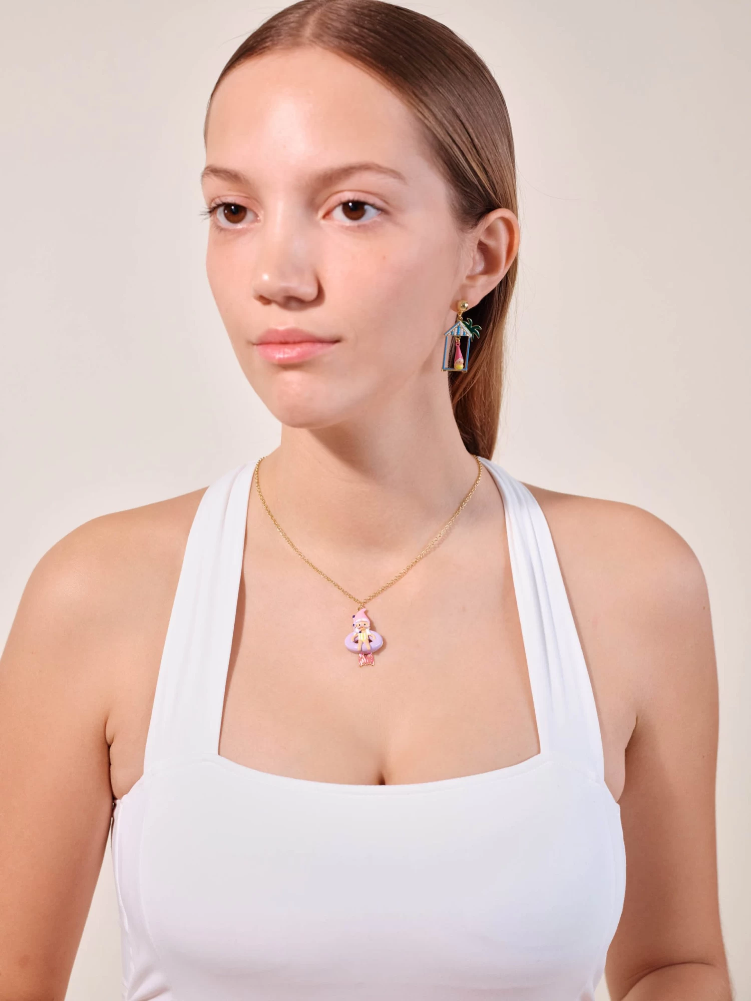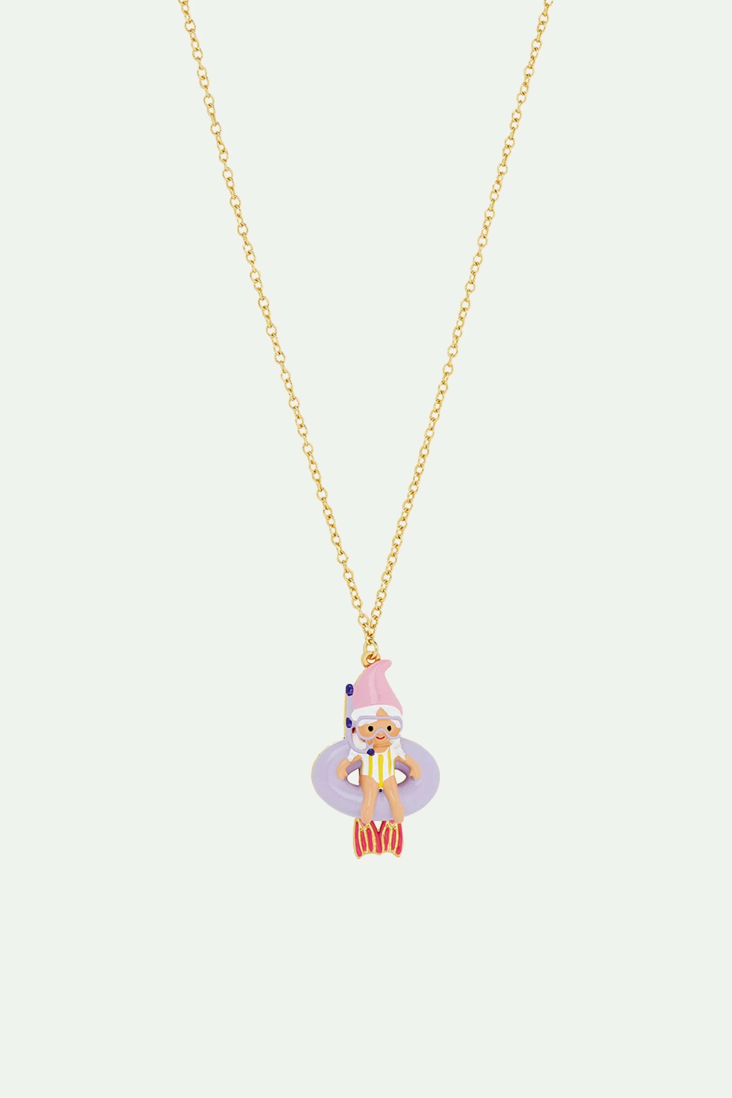 Collier pendentif, naine plongeuse sur une bouée, personnage émaillé à la main, chaîne en laiton doré à l’or fin.